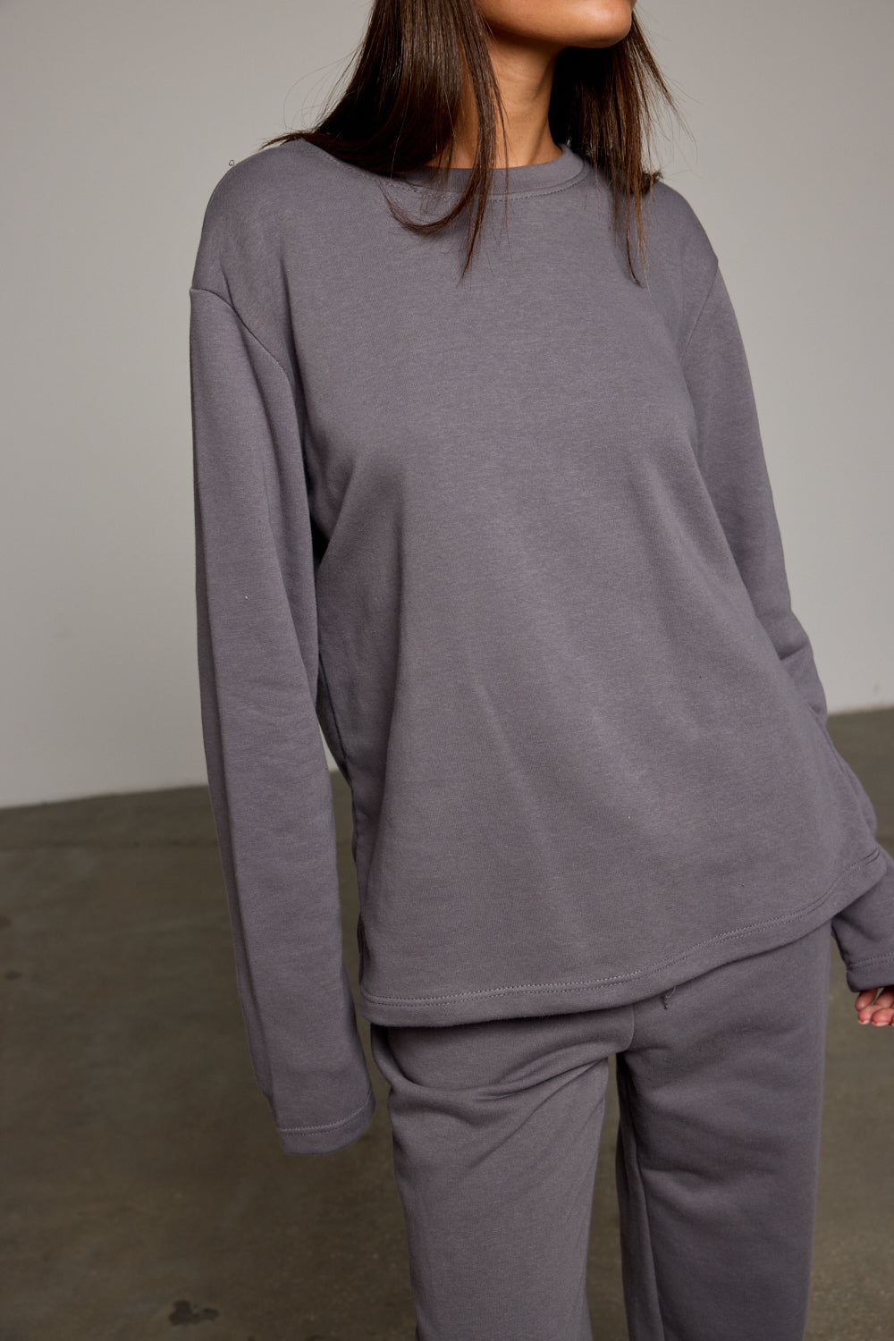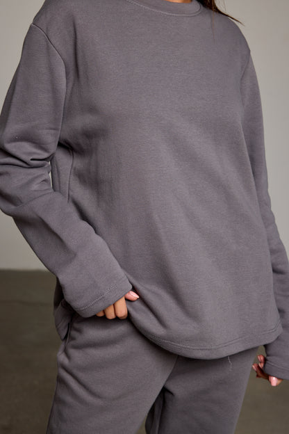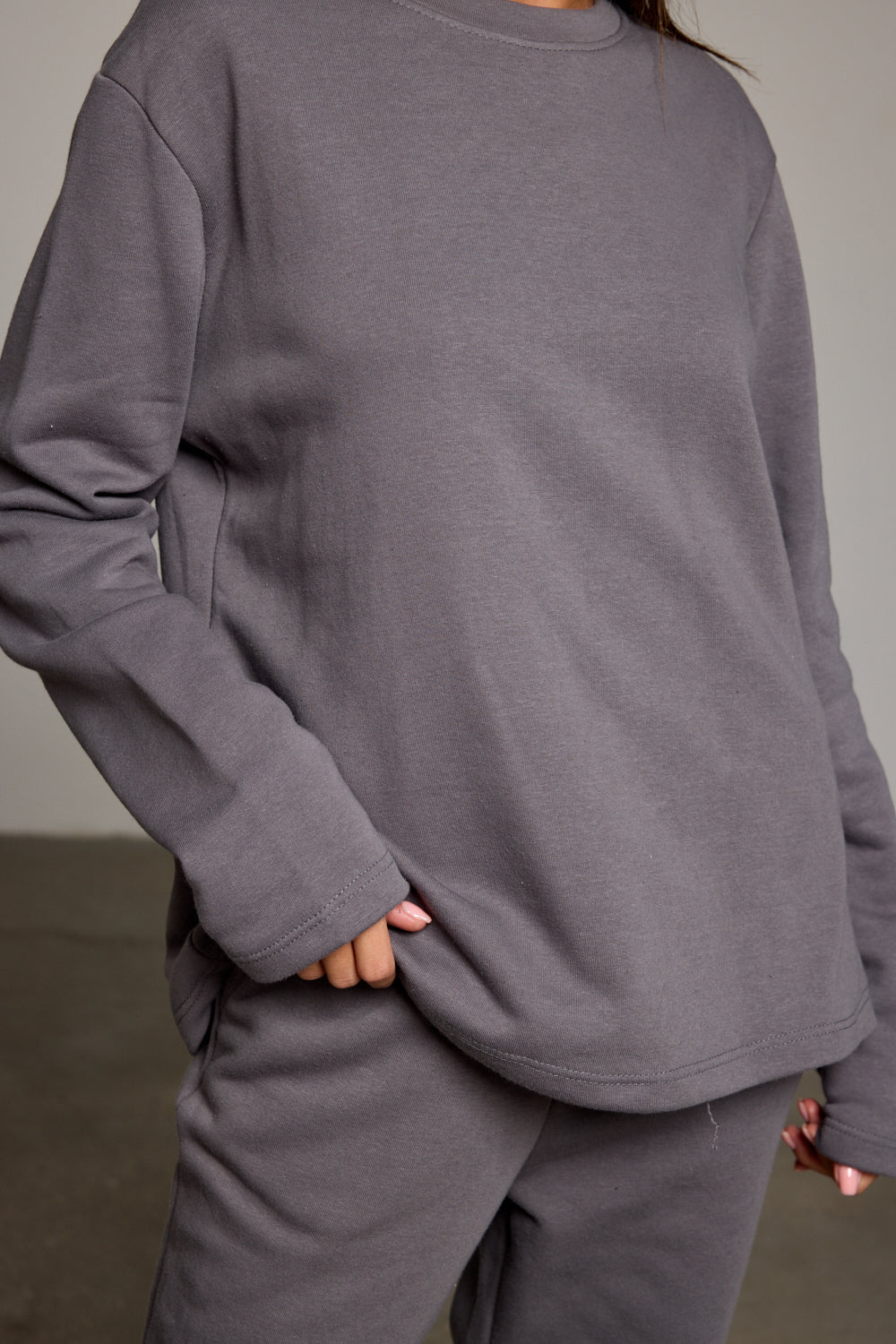 חולצה בגזרה קרובה לגוף מבד נעים למגע בשילוב צווארון מעוגל ושרוולים ארוכים. שלבי עם מכנסי אמסטדרם ליצירת לוק נינוח ויפה!