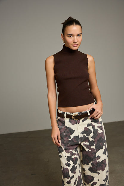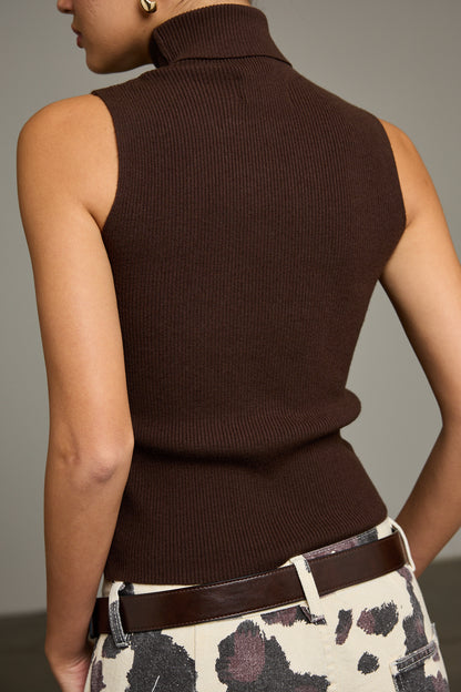 אפודת סריג בגזרה קרובה לגוף מבד נעים למגע בשילוב צווארון גולף גבוה וטקסטורת פסים