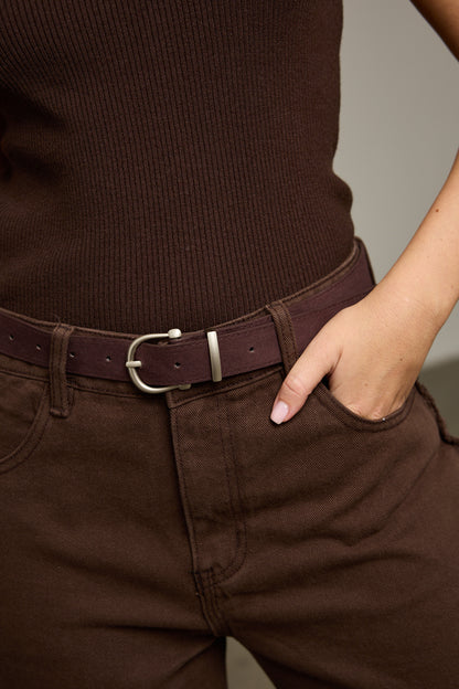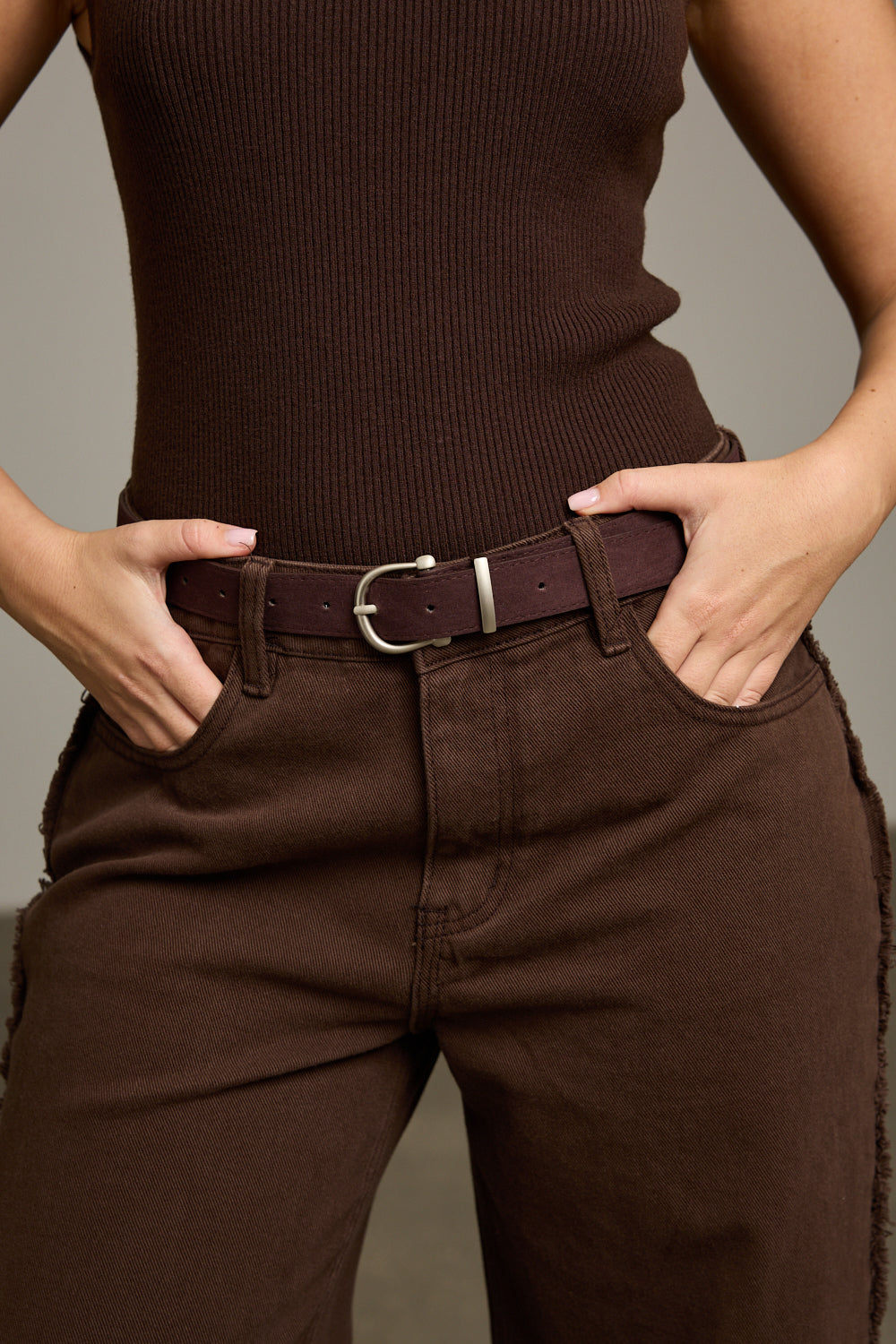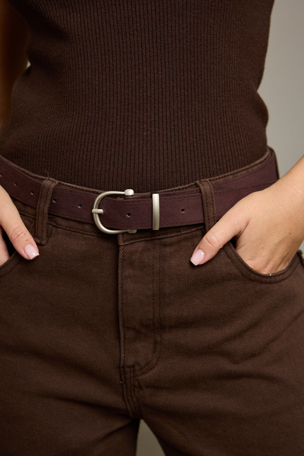 חגורת דמוי זמש רחבה בשילוב אבזם כסוף