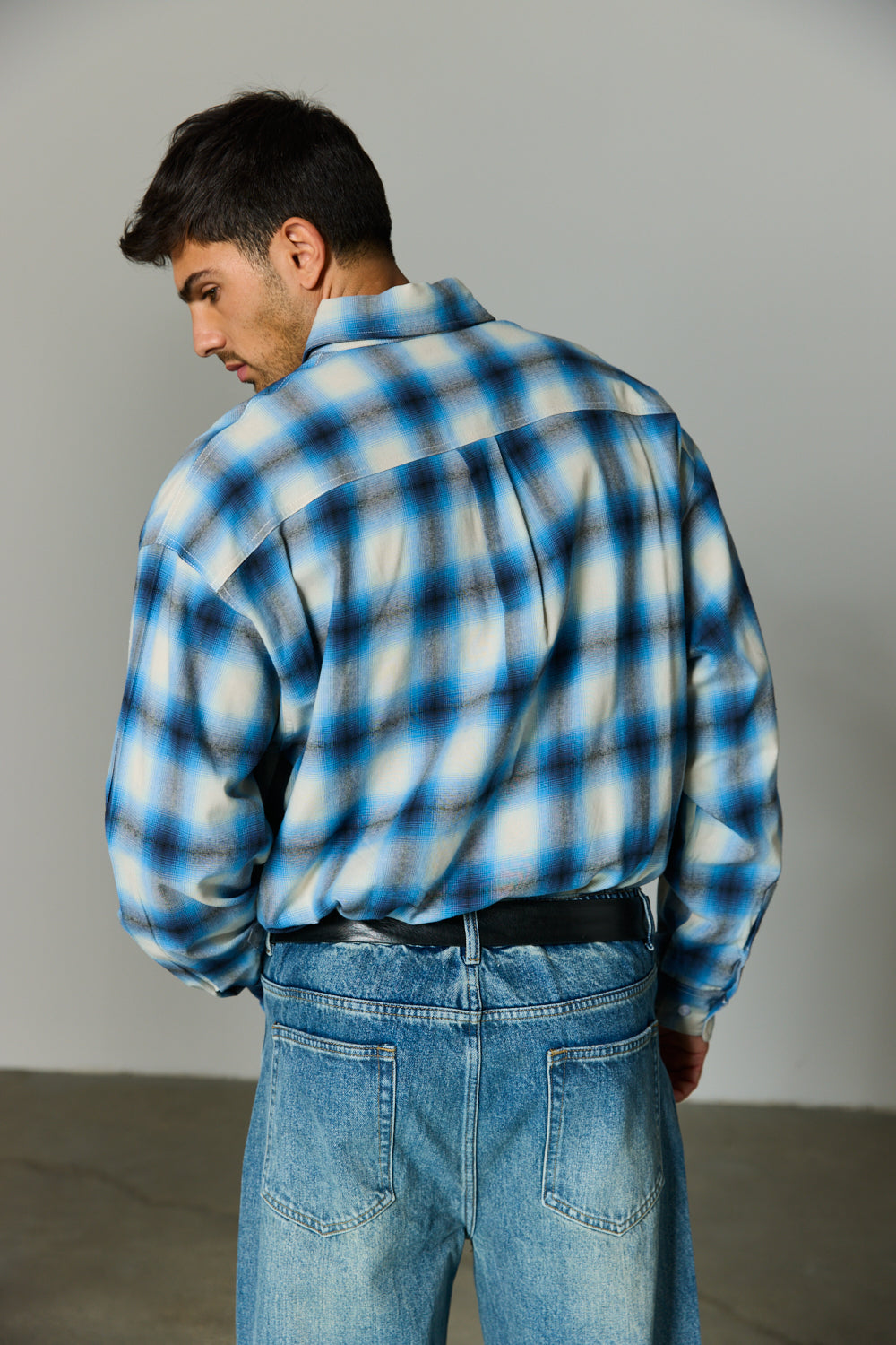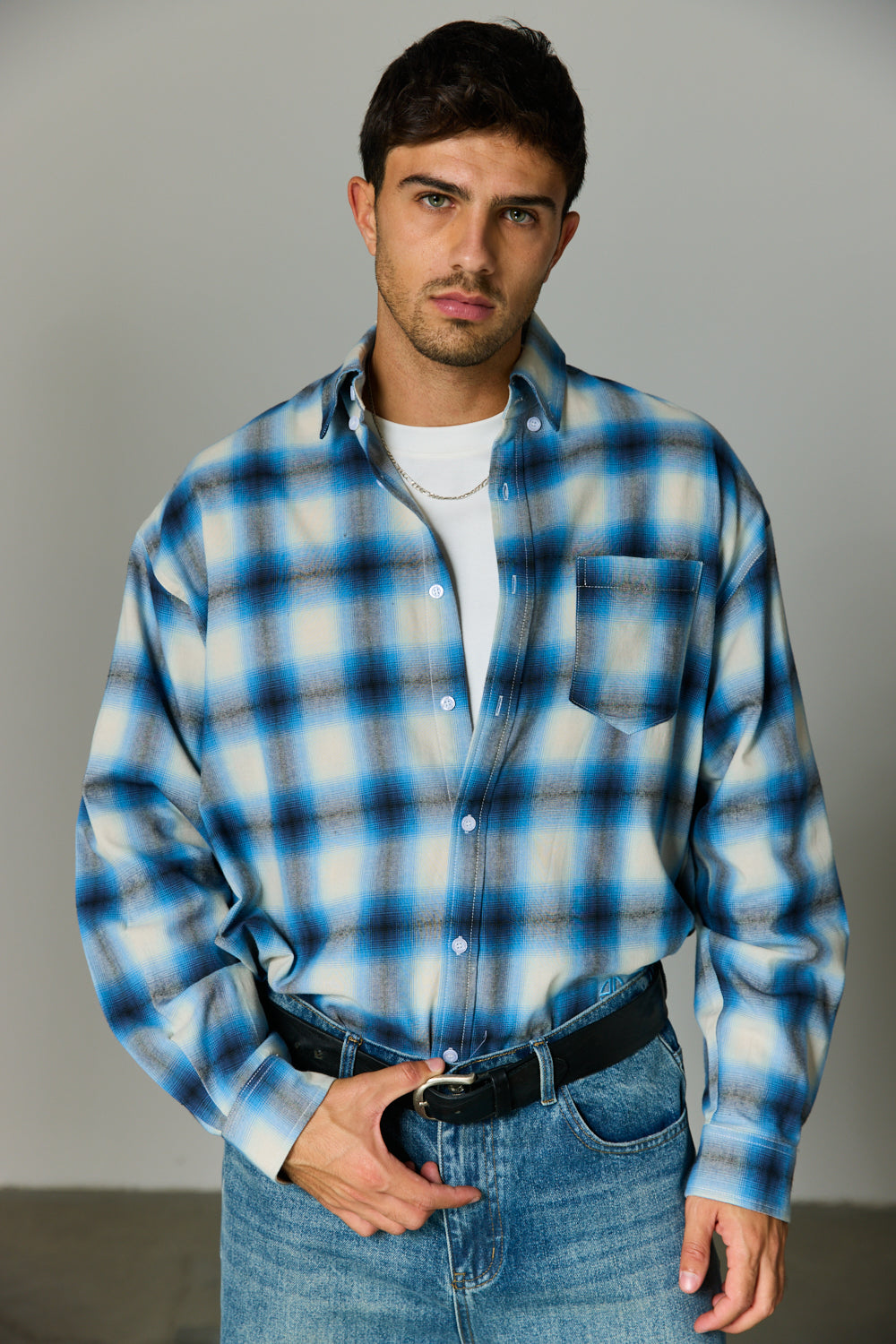 מכופתרת משבצות בגזרה ישרה בשילוב צווארון קלאסי, סגירת כפתורים, כיס מלפנים ושרוולים ארוכים