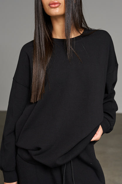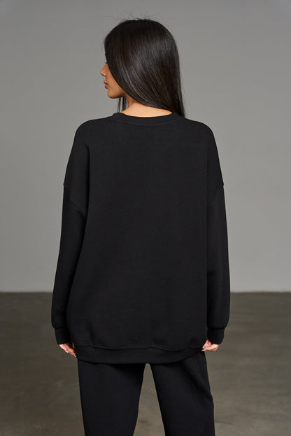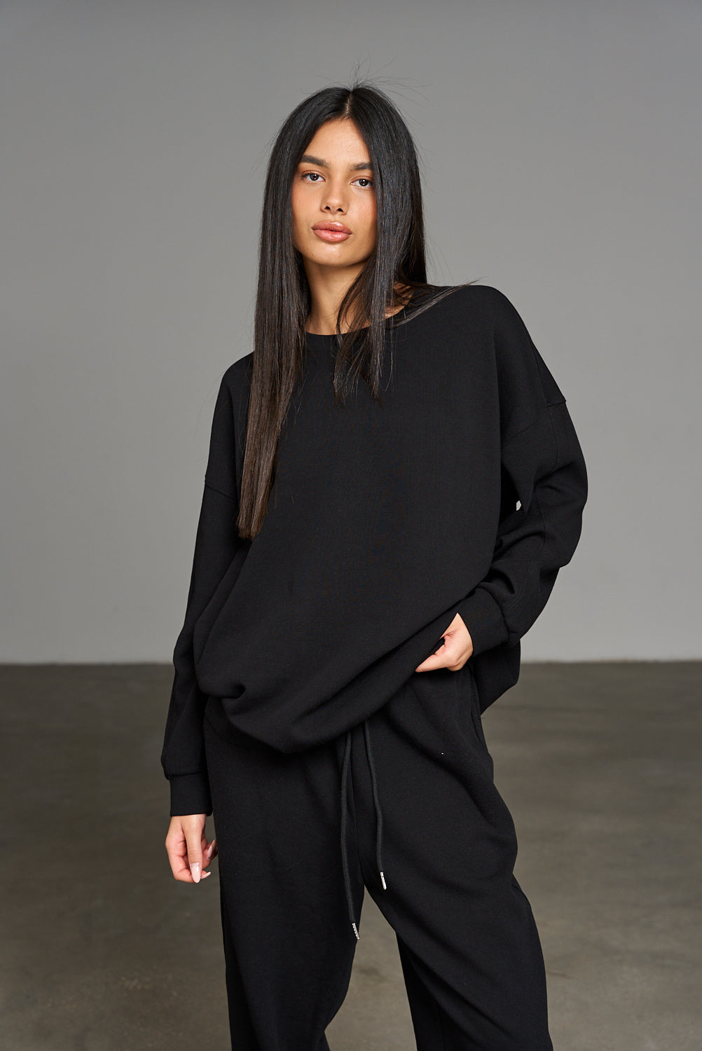 חולצה בגזרת אוברסייז מבד נעים למגע בשילוב מפתח צוואר מעוגל, שרוולים ארוכים וסיומת מנג'ט. שלבי עם מכנסי קאסי ליצירת לוק סטריט מושלם!