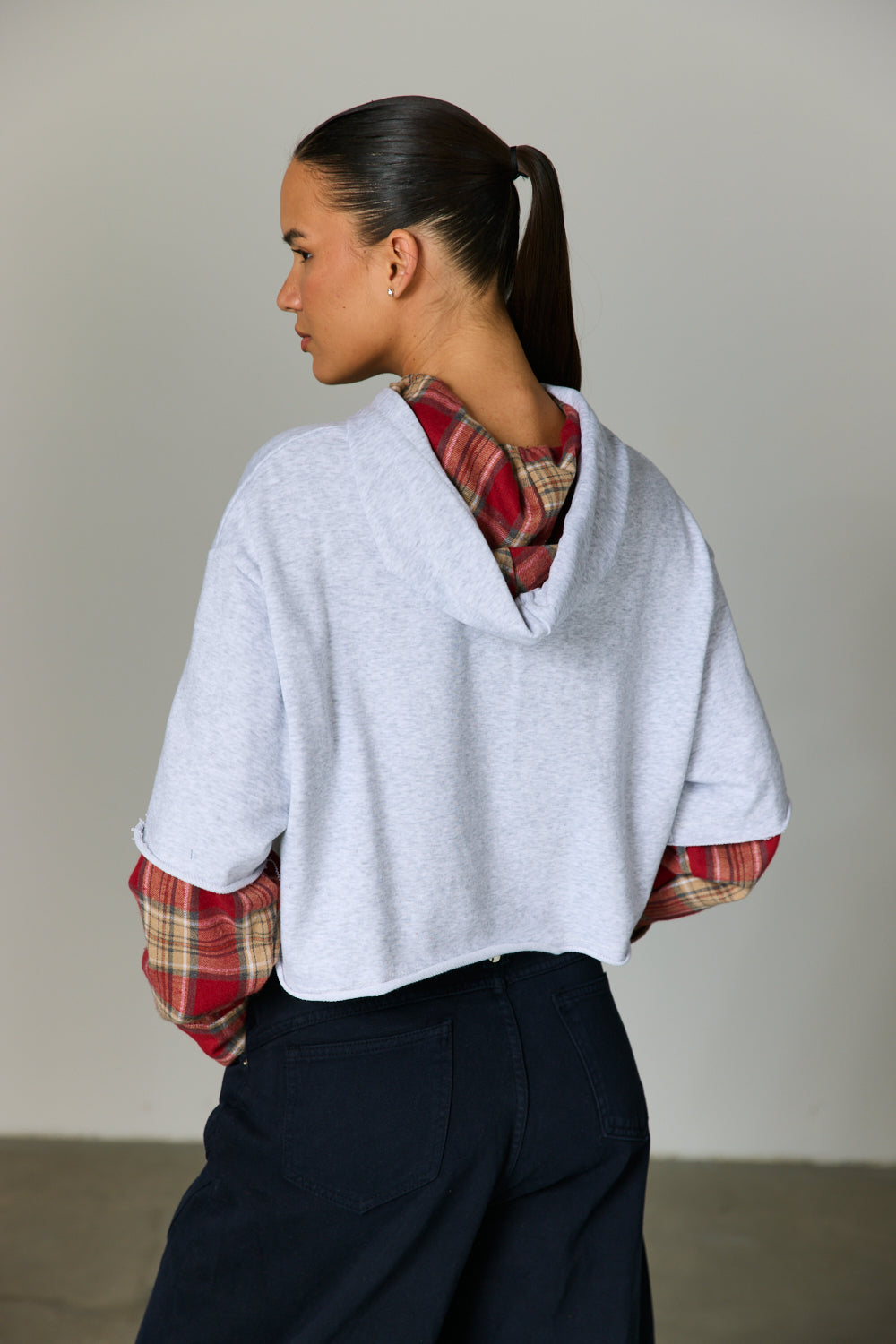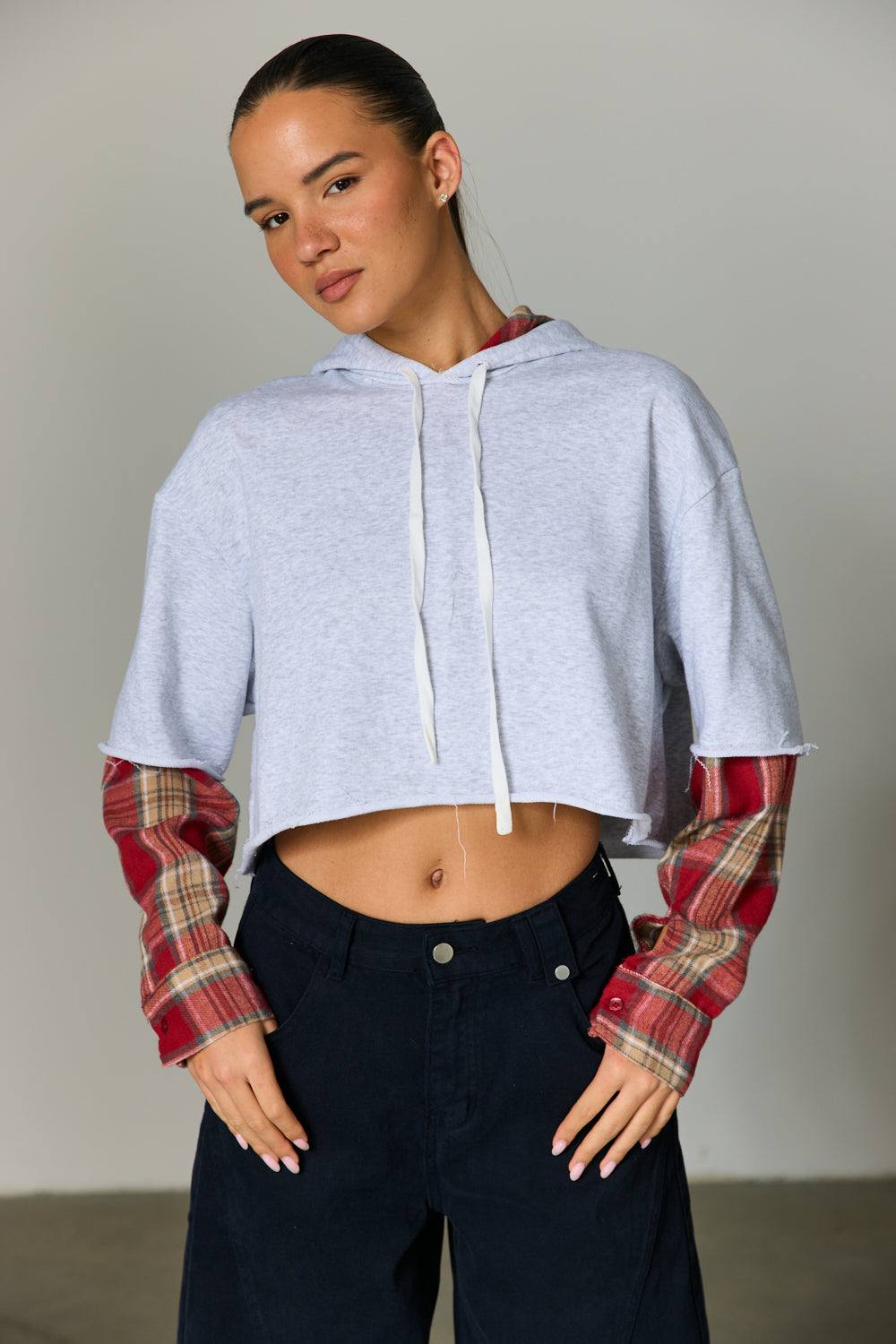קפוצ'ון בגזרת קרופ בשילוב כובע, שרוולים משולבים וסיומת גזורה