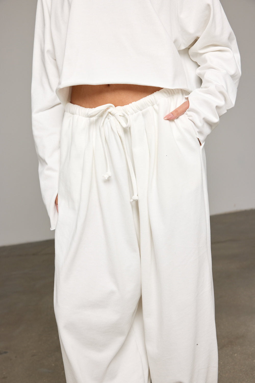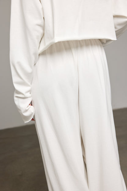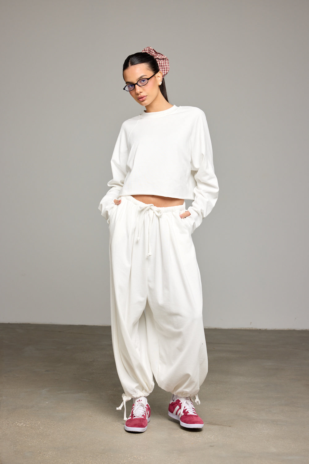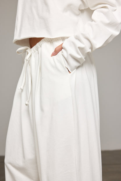 מכנסיים בגזרת בלון מבד נעים למגע בשילוב מותן אלסטית עם שרוך קשירה להידוק, קפלים מלפנים ומכפלת קשירה. שלבי עם חולצת קליר ליצירת לוק שווה!