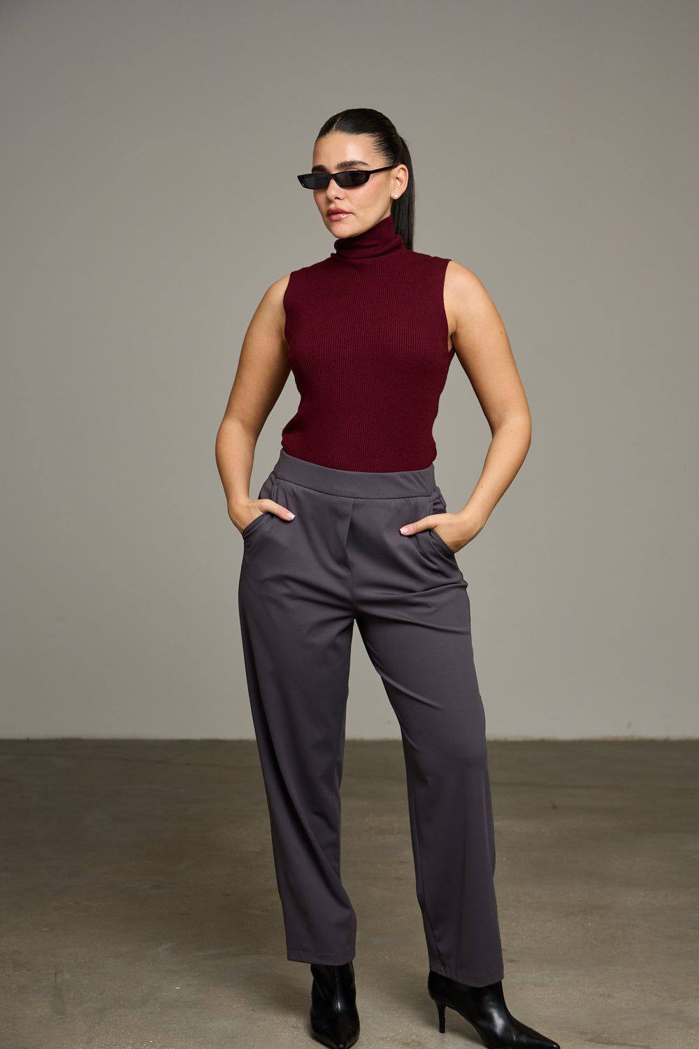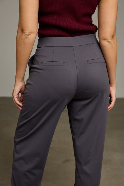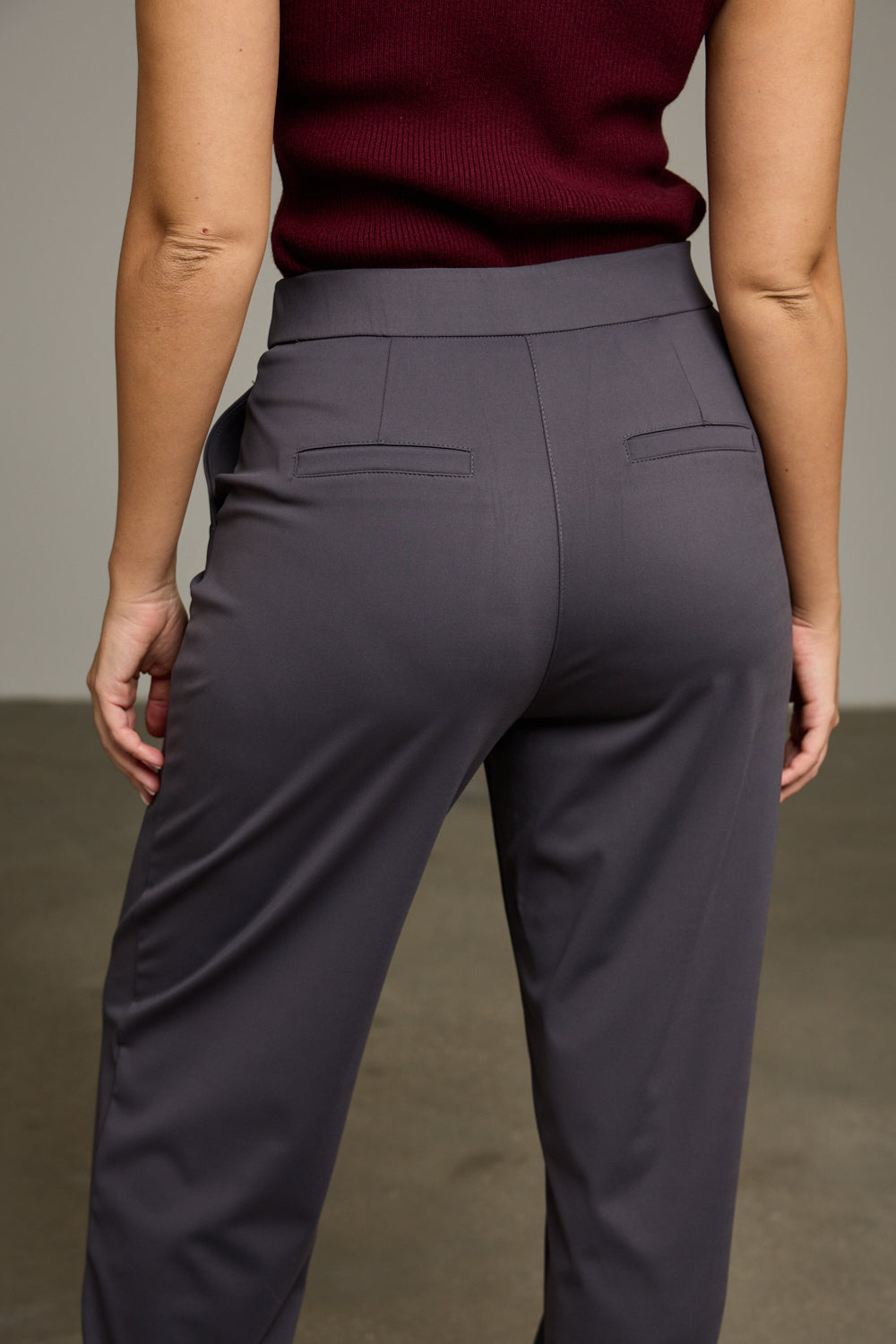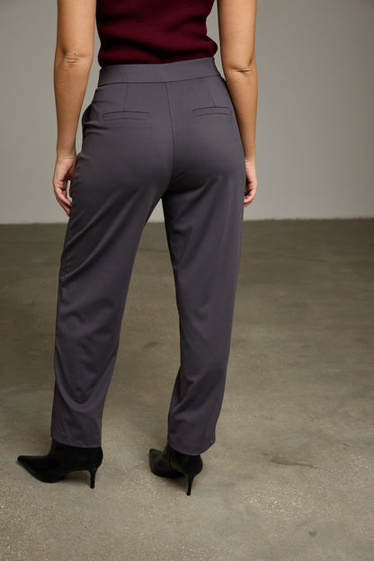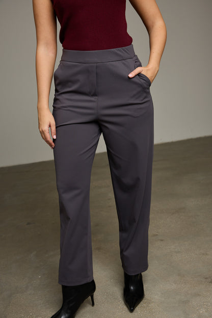 מכנסי אלגנט בגזרה ישרה מבד נעים ורך למגע בשילוב מותן אחורית אלסטית וצמד כיסים