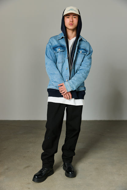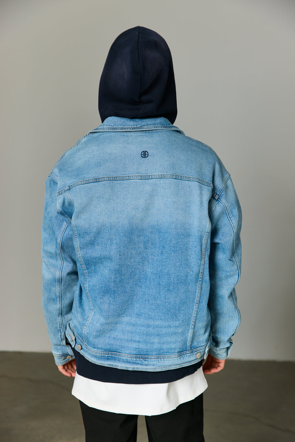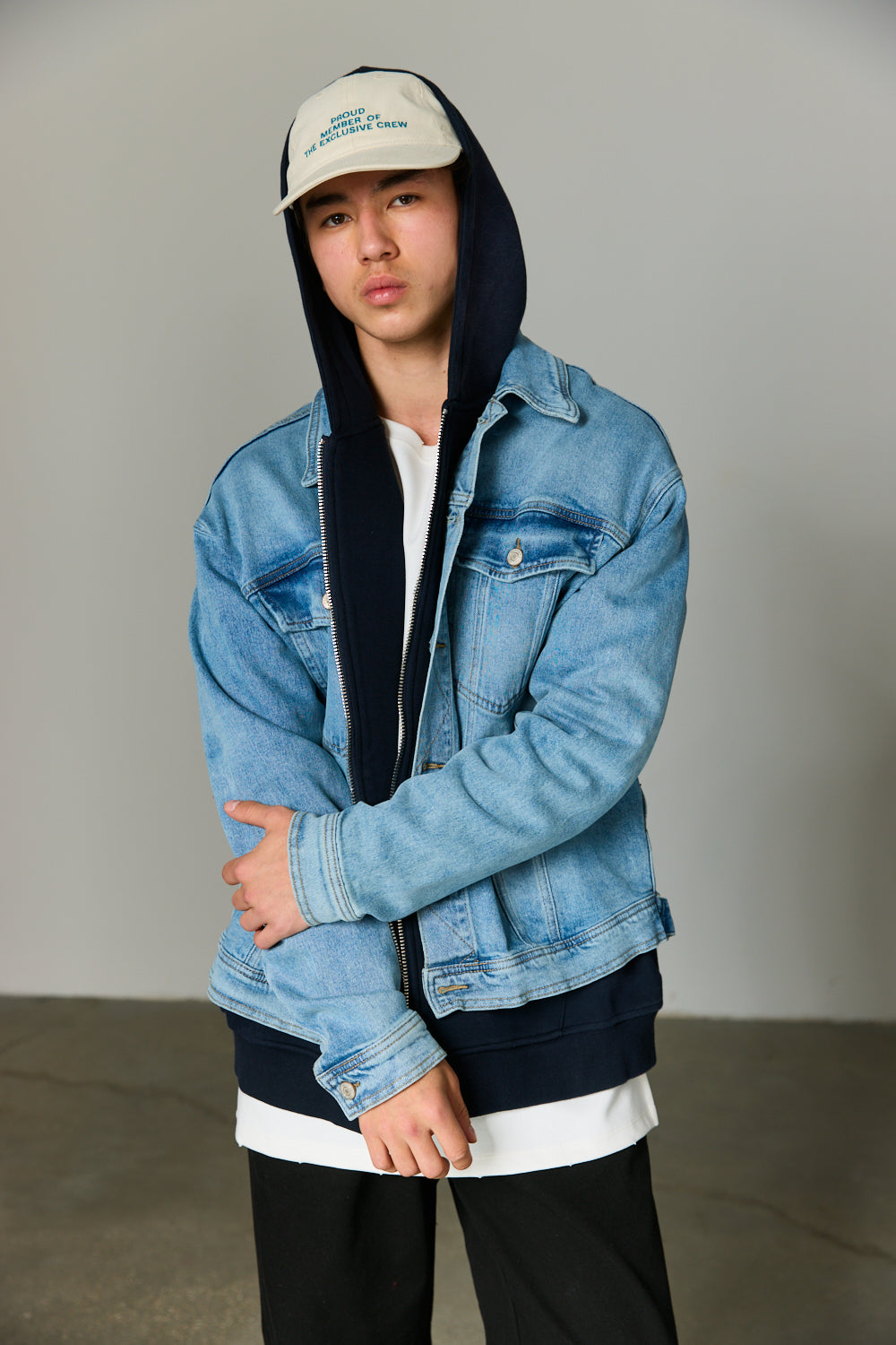 ג'קט ג'ינס בגזרת קלאסית בשילוב כיסים מלפנים, צווארון קלאסי ושרוולים ארוכים