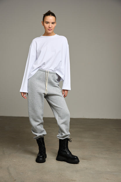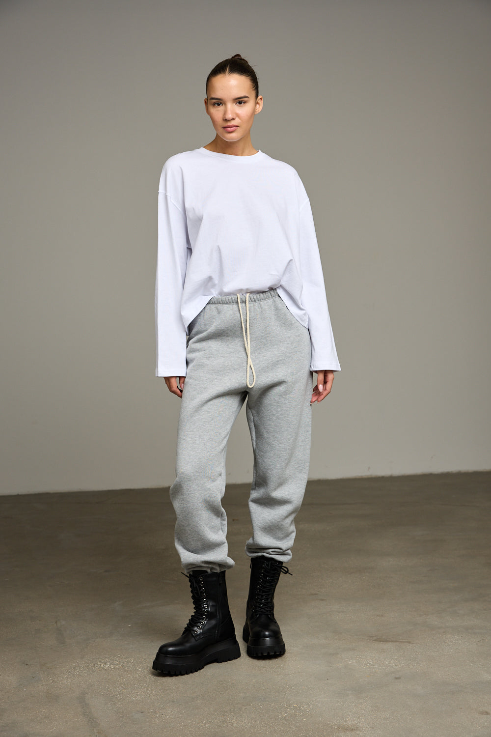 מכנסי קזואל מבד רך ונעים למגע בשילוב מותן אלסטית שרוך קשירה להידוק ומכפלת גומי