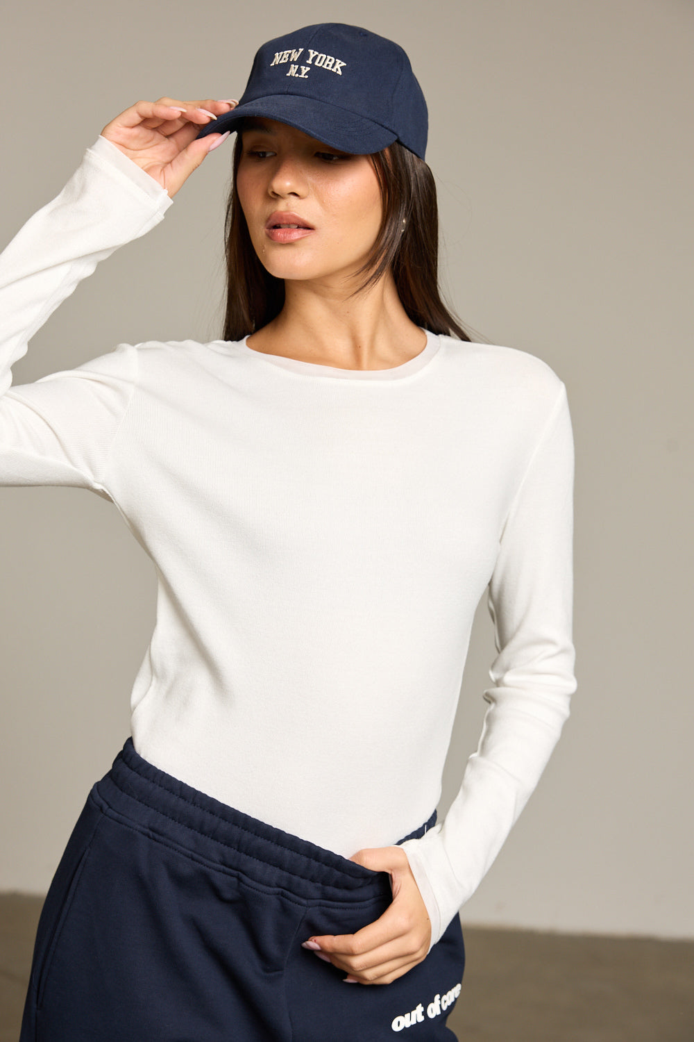 חולצת בגזרה צמודה לגוף מבד סריג נעים למגע בשילוב סיומת עם בד רזיל ומפתח סירה