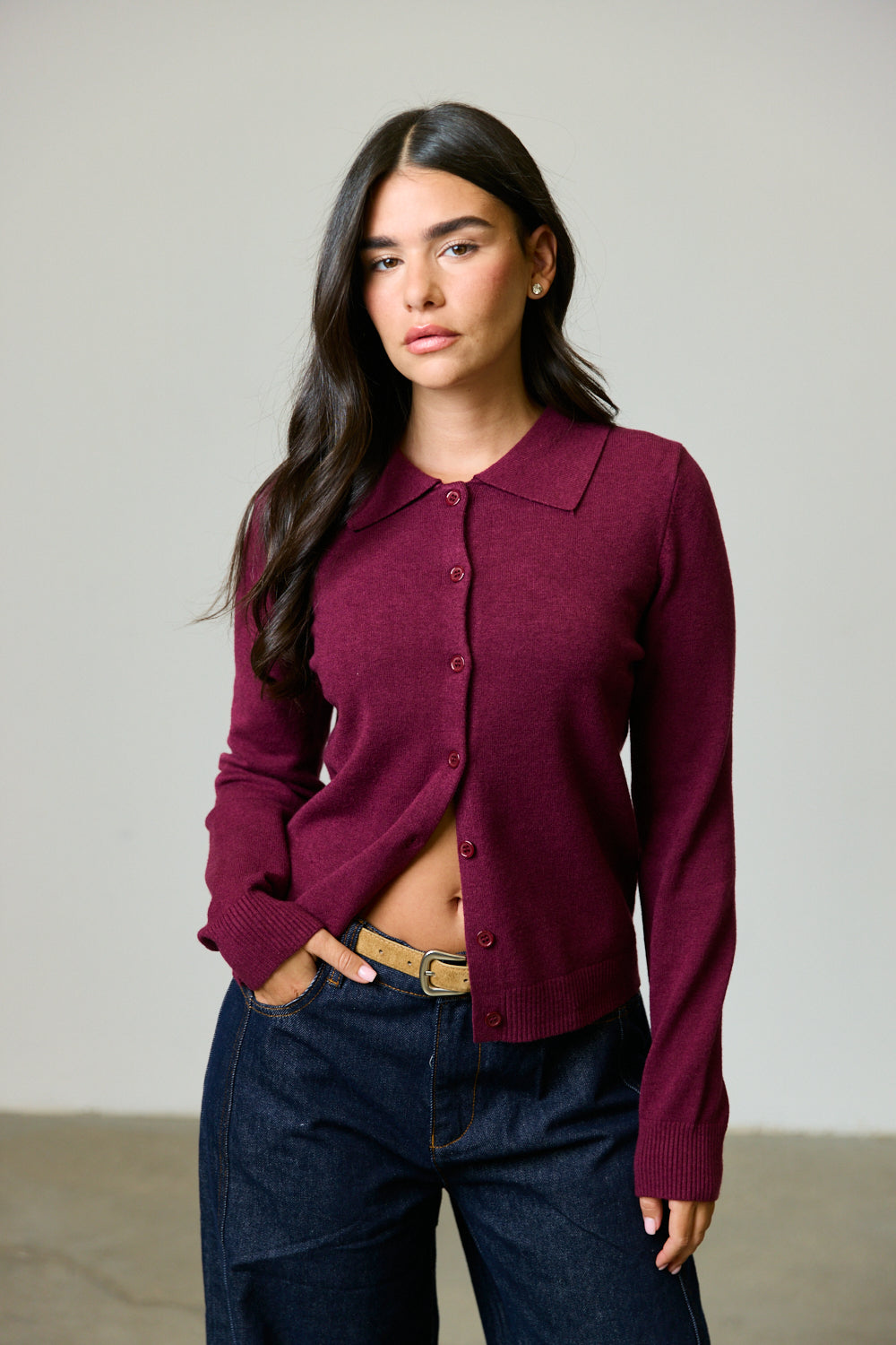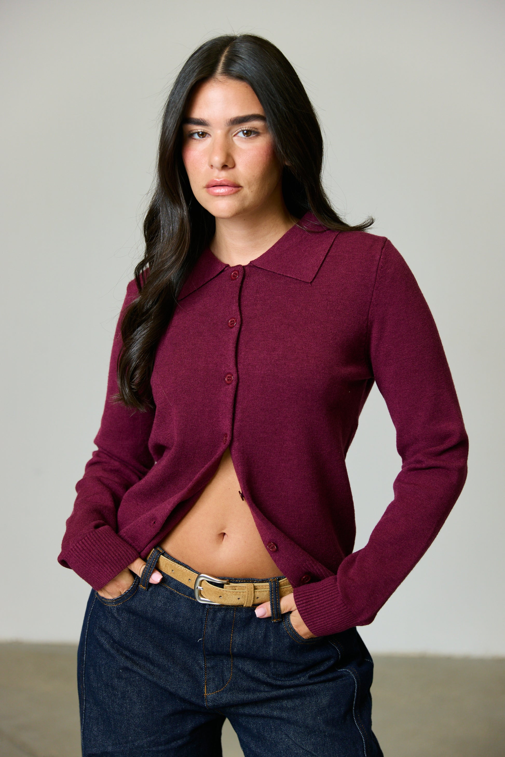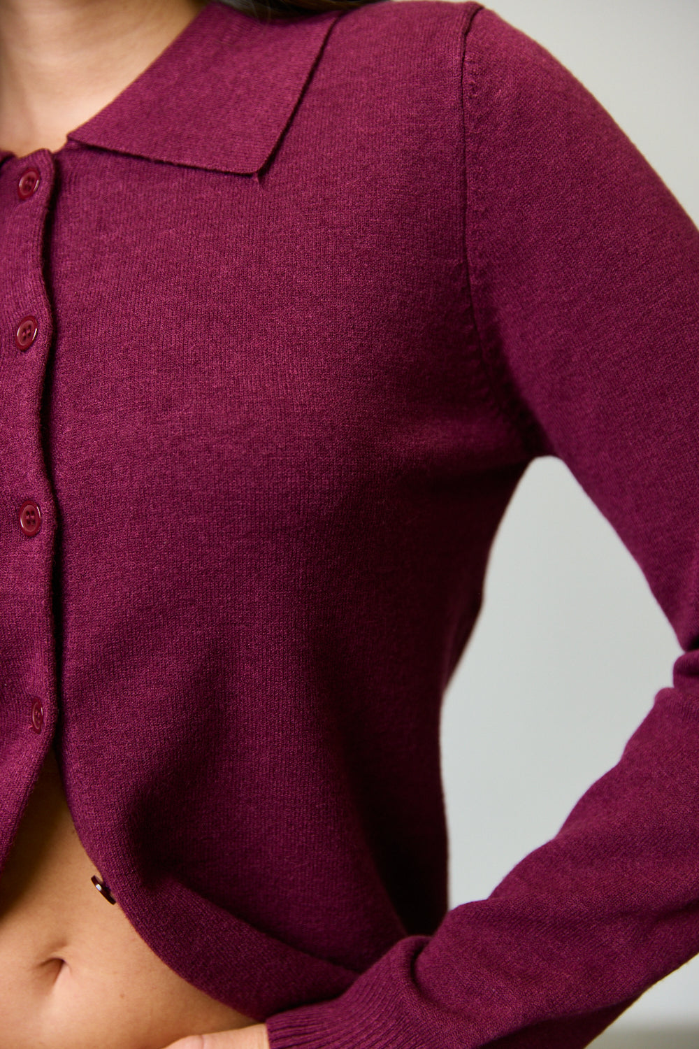 קרדיגן פלנל בגזרה קרובה לגוף בילוב צווארון קלאסי, כפתורים מלפנים ושרוולים ארוכים