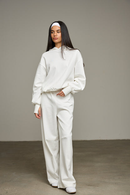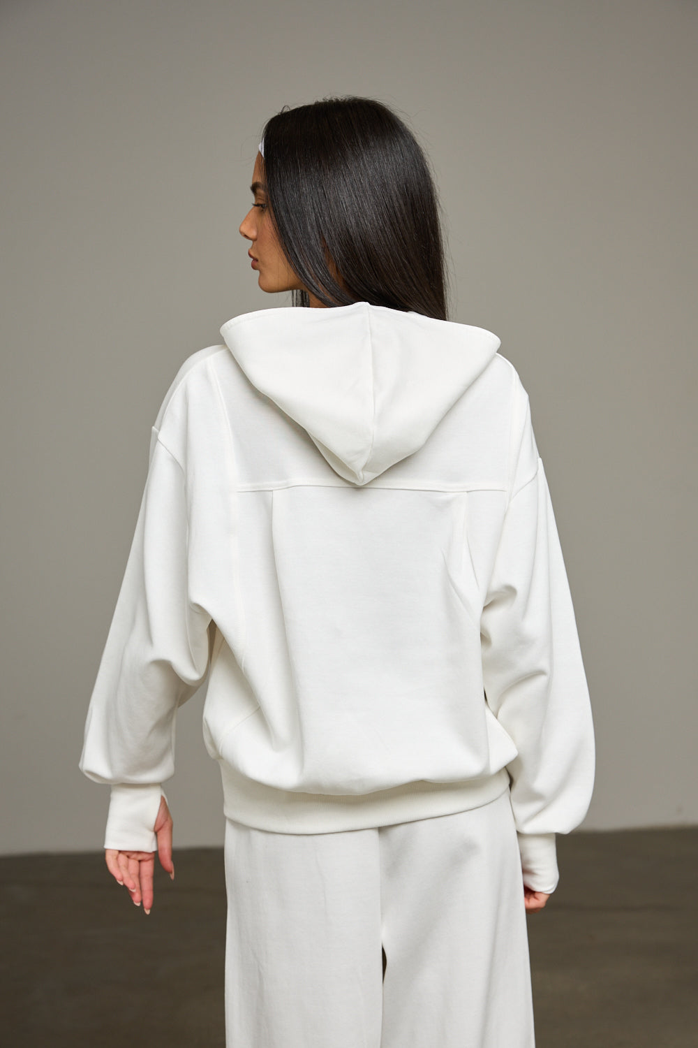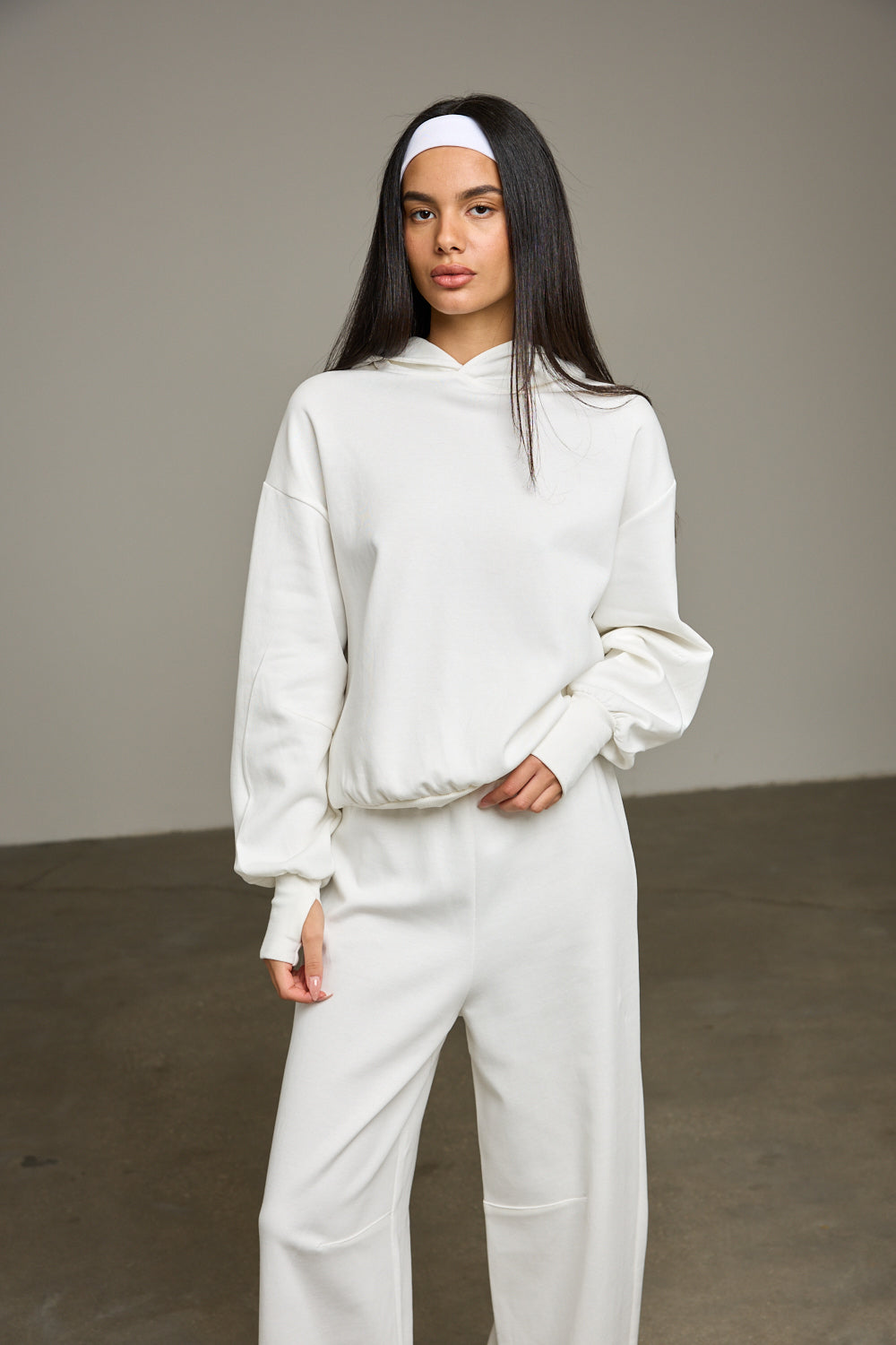 קפוצ'ון בגזרה משוחררת מבד נעים ורך למגע בשילוב כובע וסיומת מג'קט גומי רחב. שלבי עם מכנסי אינטר ללוק קזואל שחובה בארון!
