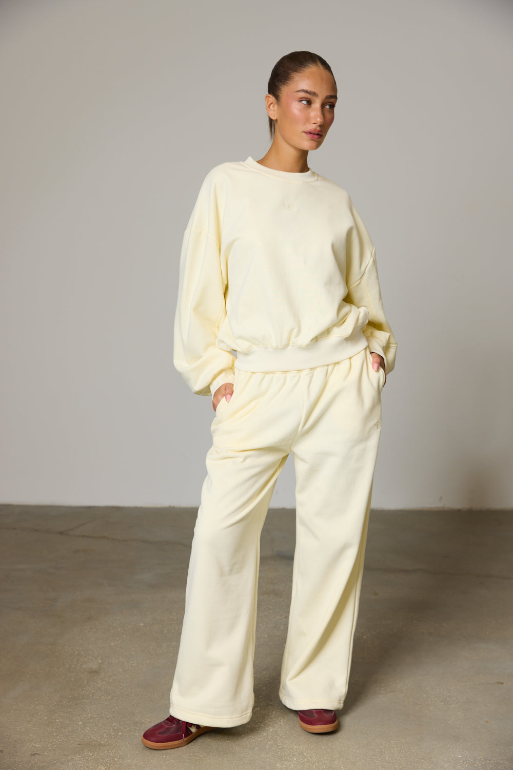 מכנסי פוטר בגזרה משוחררת מבד נעים למגע בשילוב מותן אלסטית, שרוך קשירה להידוק וצמד כיסים. שלבי עם פוטר קיארה ליצירת לוק קזואל היסטרי!