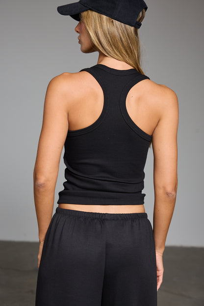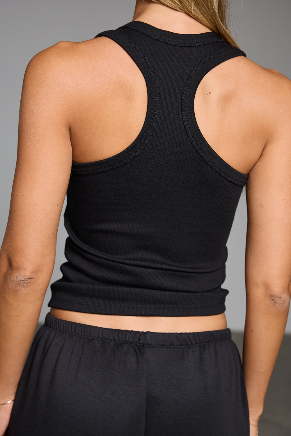 גופיית בייסיק חלקה מבד ריב בגזרה צמודה לגוף עם כתפיות בוקסר רחבות
