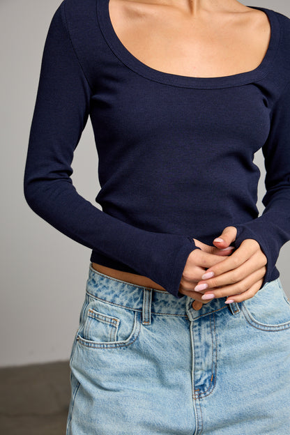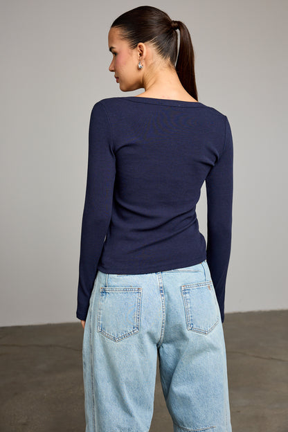 חולצת ריב בגזרה צמודה לגוף מבד נעים למגע בשילוב מפתח צוואר ביצה
