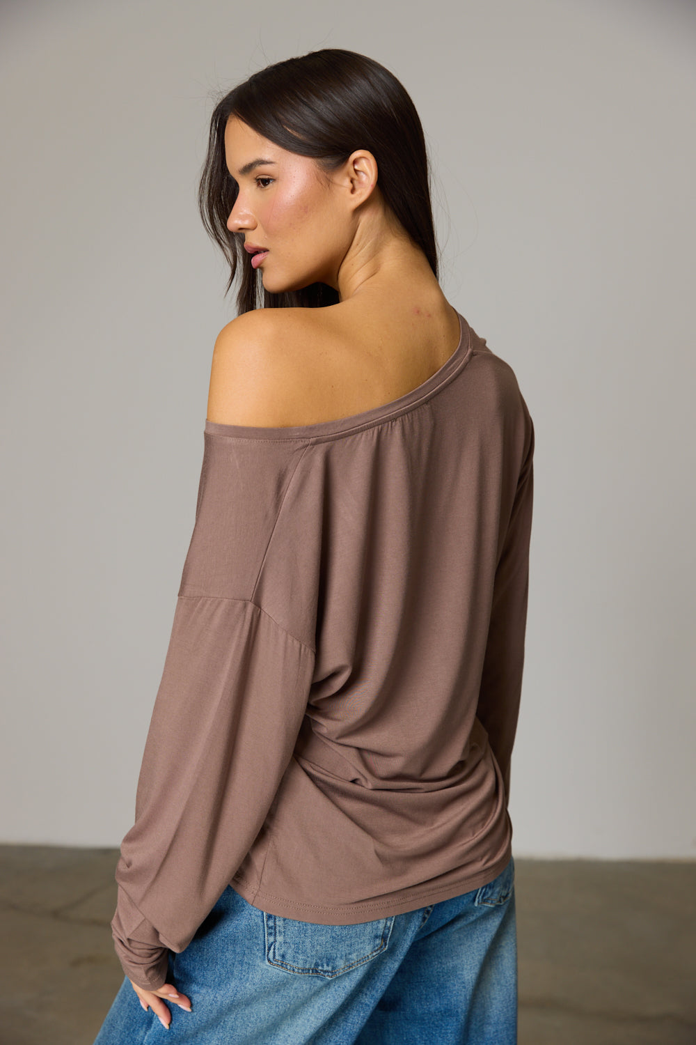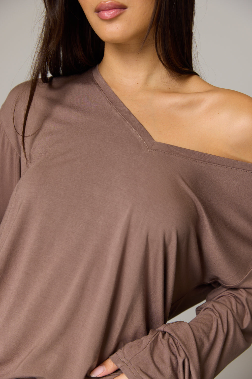 חולצה בגזרה משוחררת מבד נעים ושקפקף בשילוב צווארון V עמוק