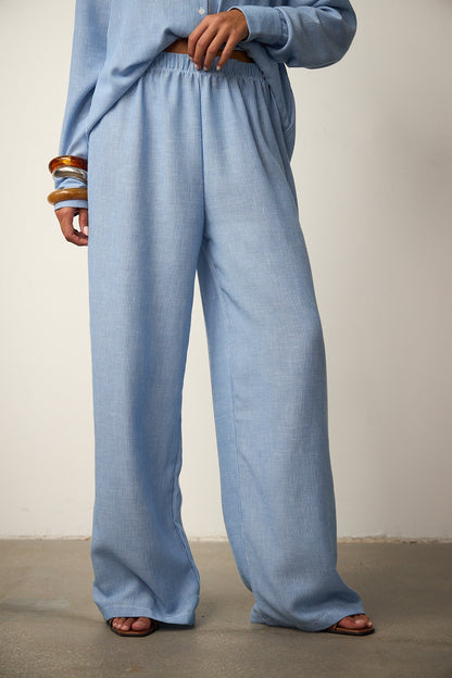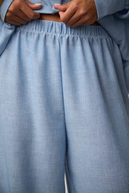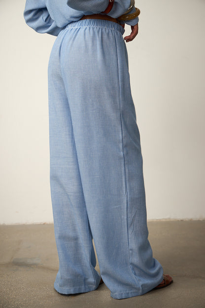 מכנסיים בגזרה משוחררת מבד פסים נשפך בשילוב מותן אלסטית. שלבי עם מכופתרת מייבי ללוק מלא בסטייל!