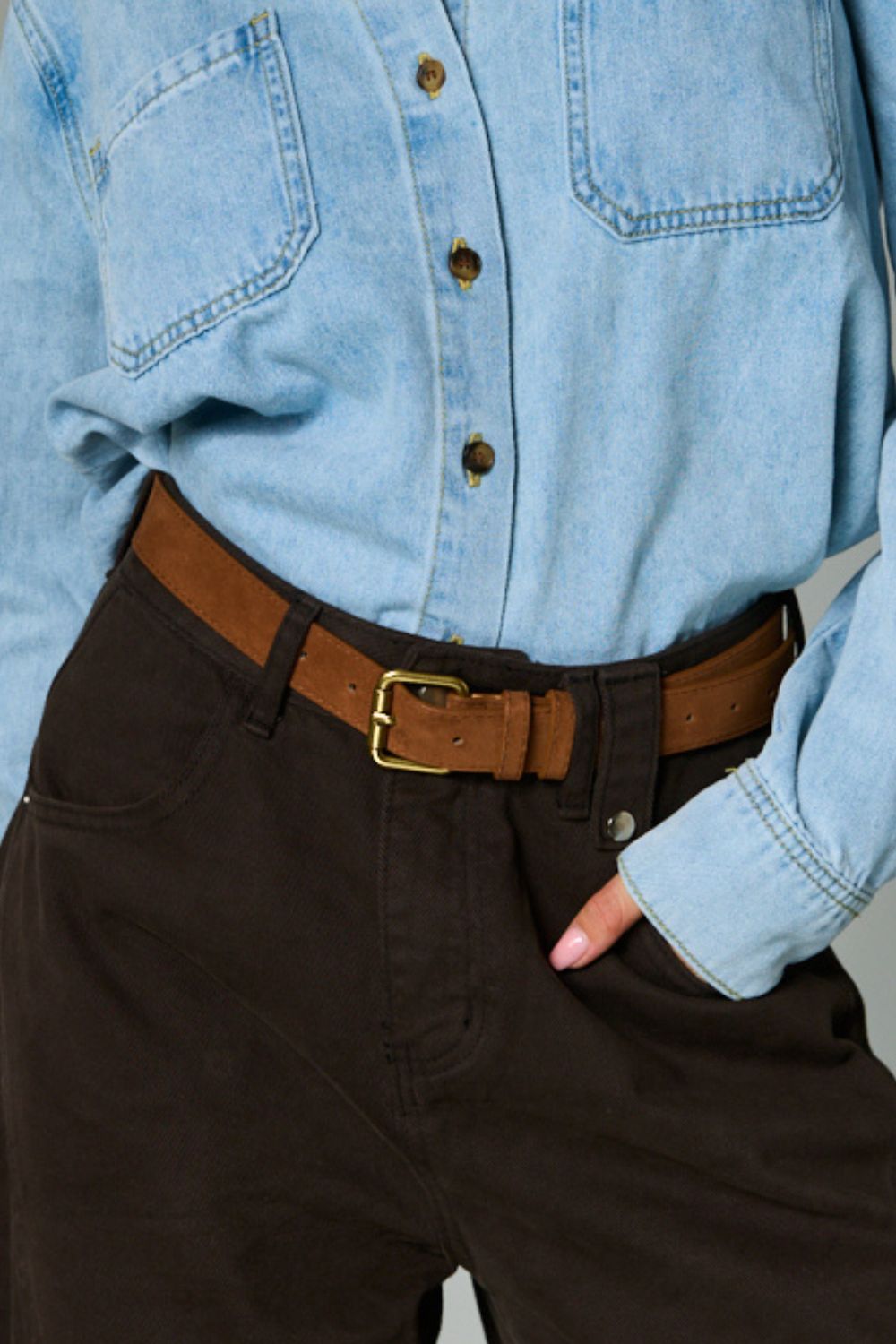 חגורה דמוי זמש בשילוב אבזם מרובע מוזהב