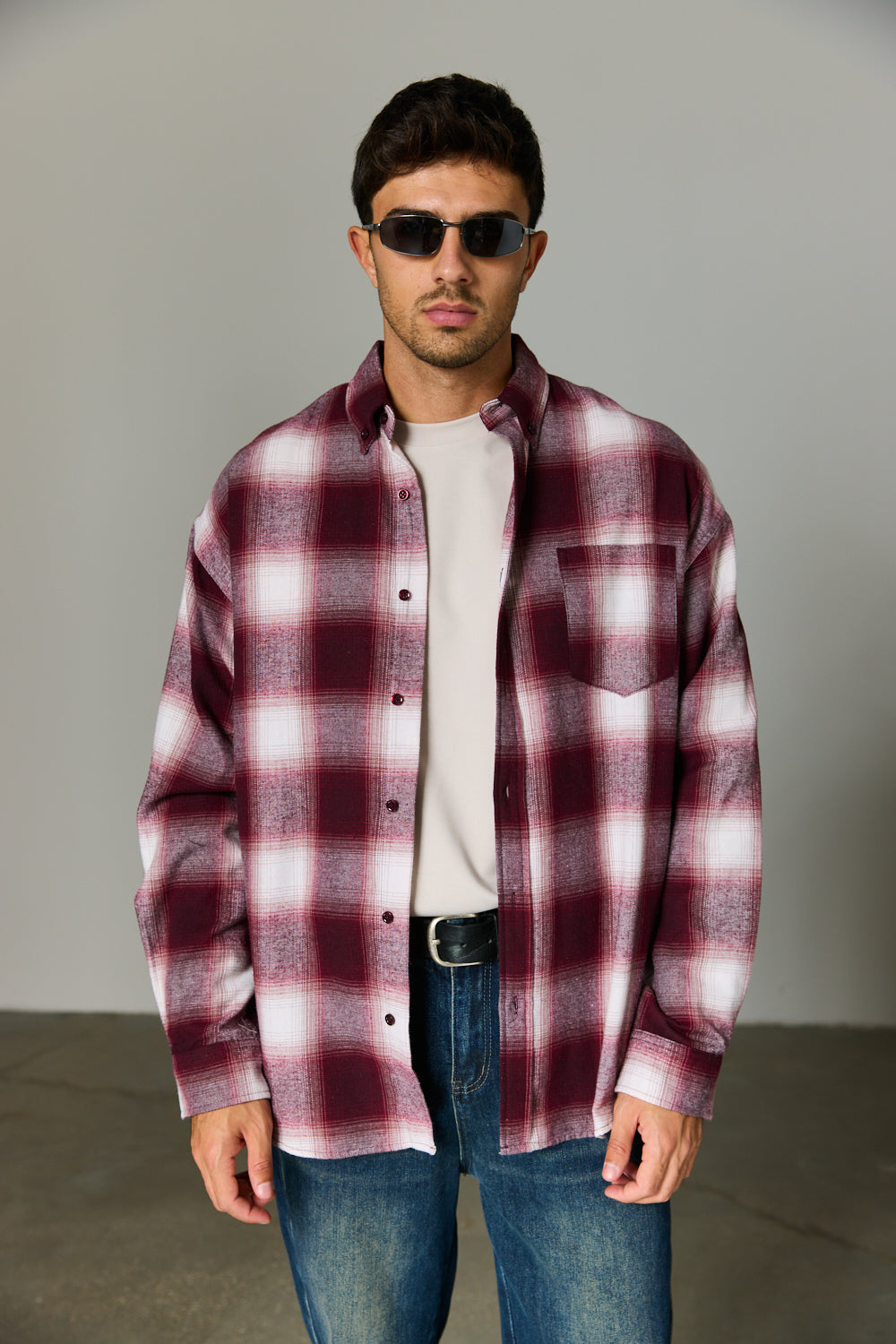 מכופתרת בגזרה ישרה מבד משבצות נעים למגע בשילוב צווארון קלאסי, סגירת כפתורים מלפנים וכיס קדמי