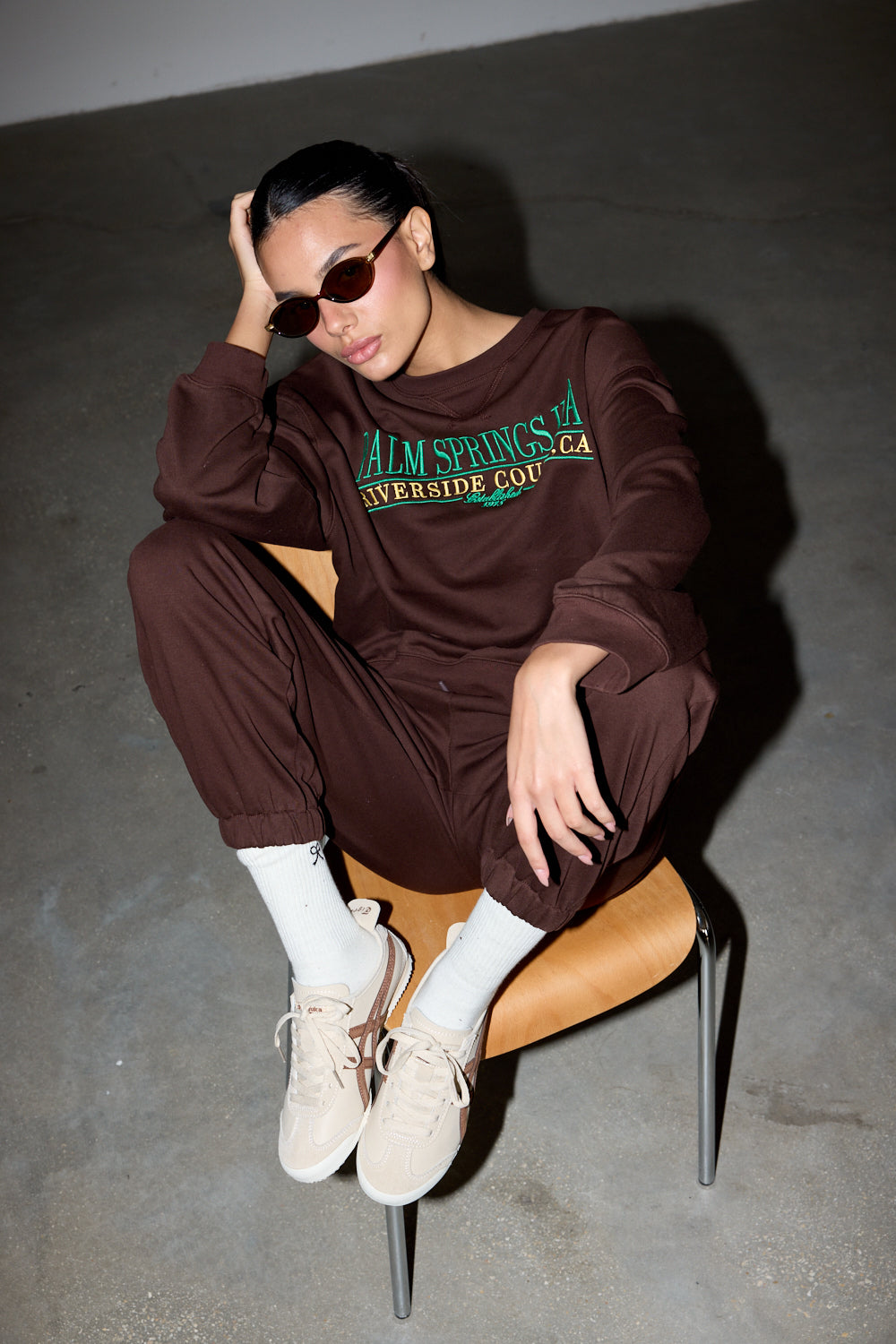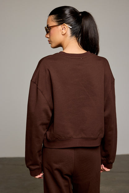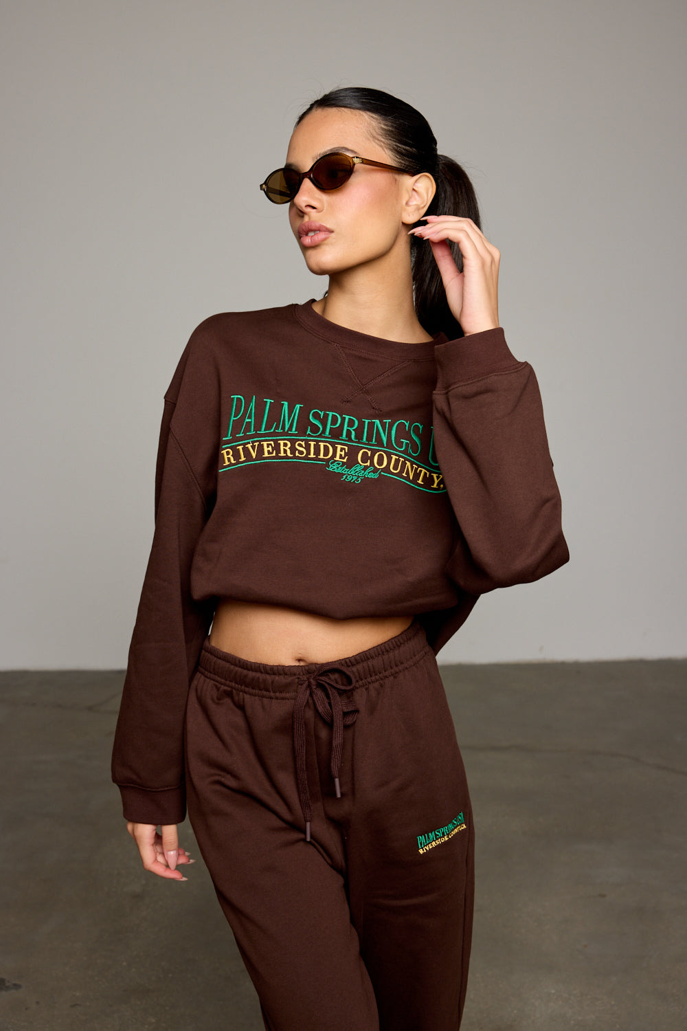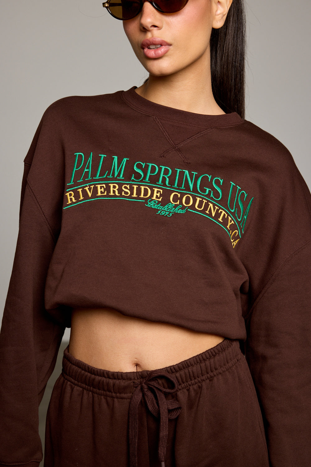 חולצת פוטר בגזרה קרובה לגוף מבד נעים למגע בשילוב הדפס רקום מלפנים, שרוולים ארוכים וצווארון עגול. שלבי עם מכנסי פאלם ליצירת לוק היסטרי!