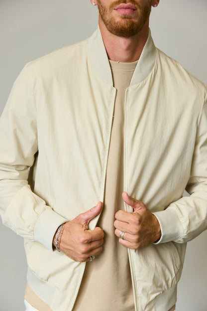 גקט ניילון מבד ניילון בעיצוב קלאסי עם צווארון סיני, שרוולים ארוכים וצמד כיסים בצדדים. לגקט סגירת רוכסן מלפנים