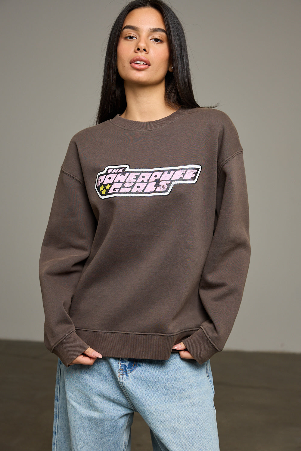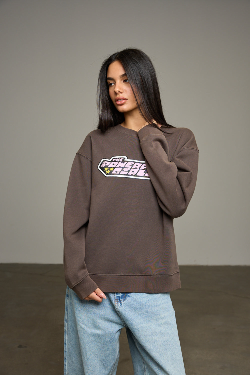 פוטר בגזרה משוחררת מבד נעים למגע בשילוב צווארון עגול, והדפס מלפנים ומאחור עם שרוולים רחבים