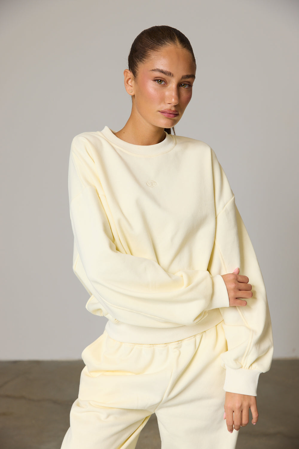 פוטר בגזרה משוחררת מבד נעים למגע בשילוב צווארון ריב מעוגל, לוגו רקום מלפנים וסיומת מנג'ט. שלבי עם מכנסי קיארה ליצירת לוק קזואל היסטרי!