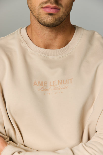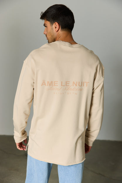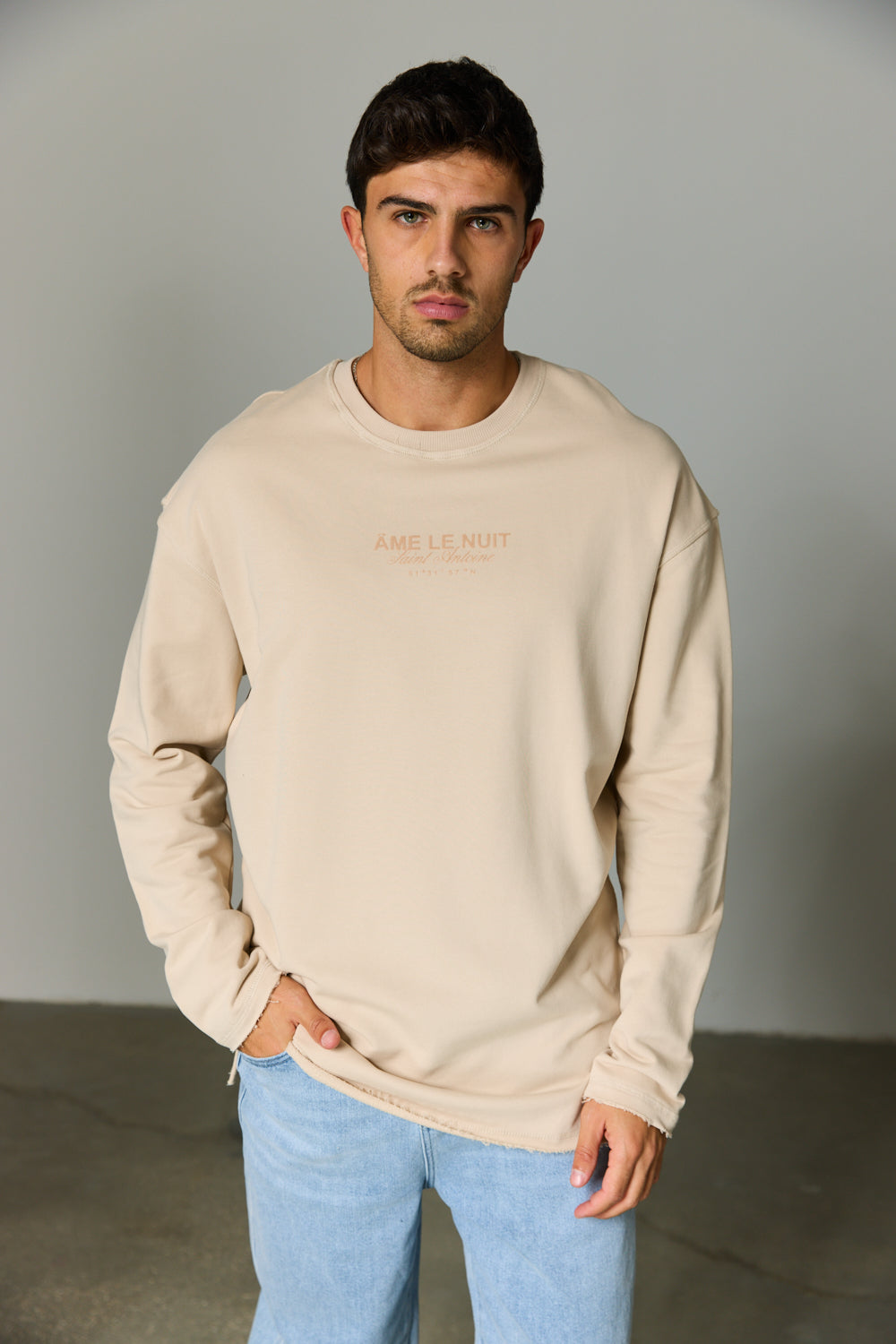חולצה בגזרה משוחררת מבד נעים למגע בשילוב הדפס קדמי ואחורי, שרוולים ארוכים, צווארון ריב מעוגל ושמכפלת פרומה