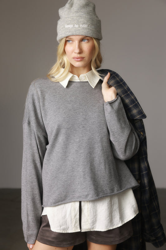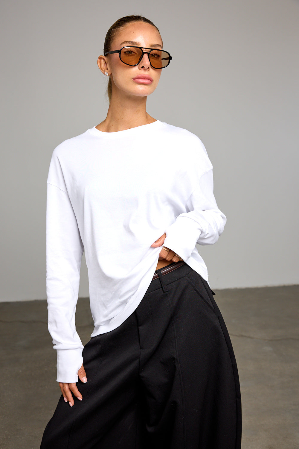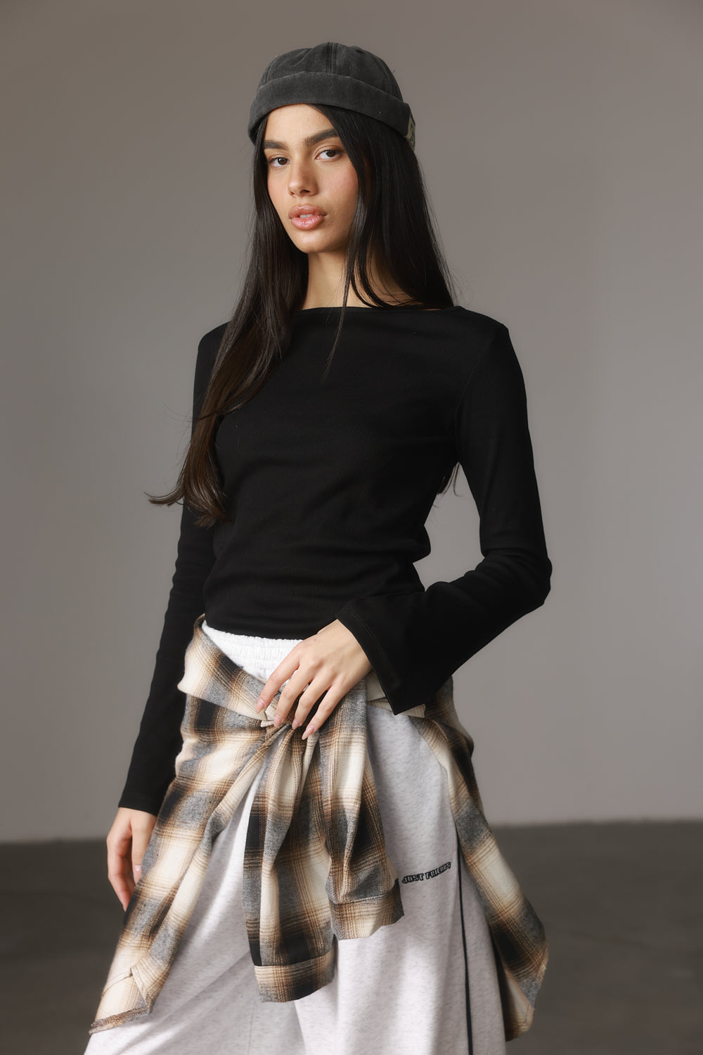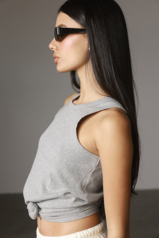 גופייה בגזרה קרובה לגוף מבד סריג נעים למגע בשילוב כתפיות רחבות