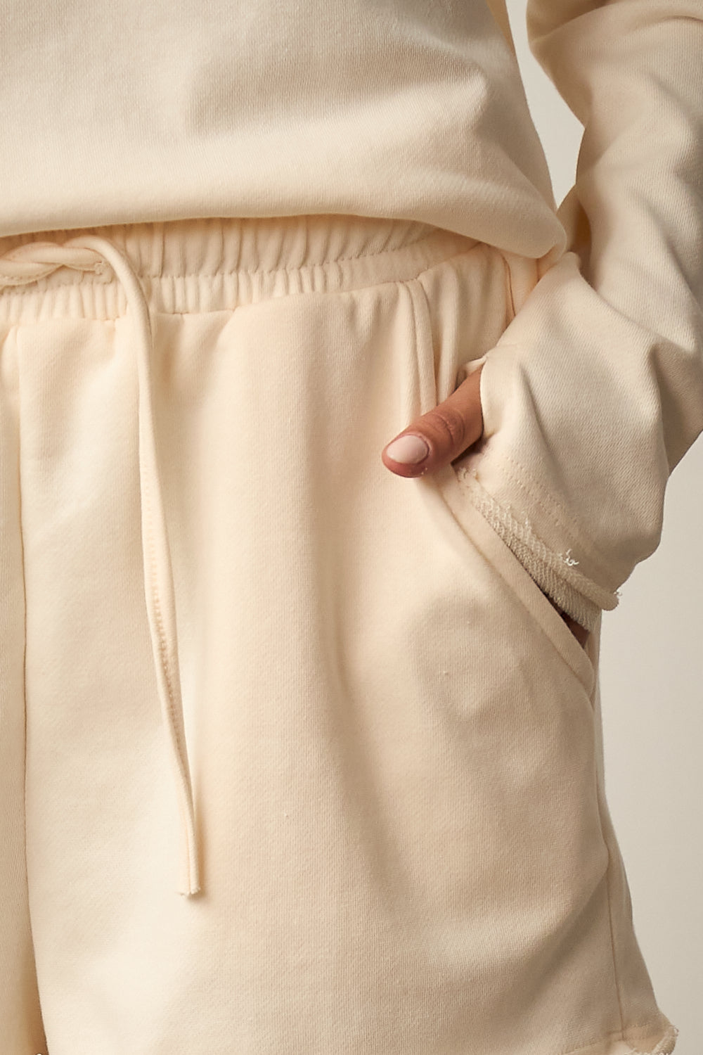 שורט בגזרה משוחררת מבד נעים למגע בשילוב מותן אלסטית, שרוך קשירה להידוק, שלושה כיסים ומכפלת פרומה. שלבי עם חולצת ויידר ליצירת לוק בייסיק מושלם!