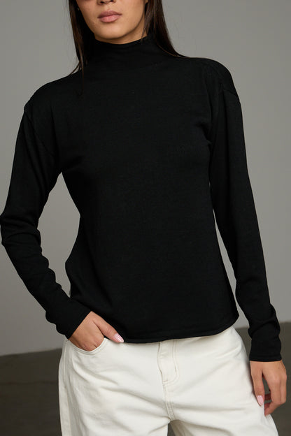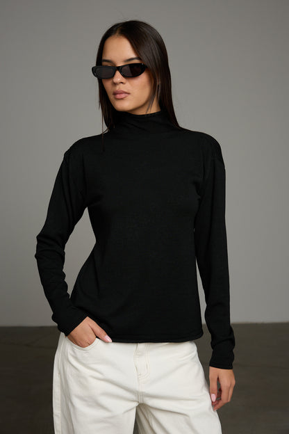 חולצה בגזרה משוחררת מבד נעים למגע בשילוב צווארון גבוה, מחשוף גב עם קשירה מאחור