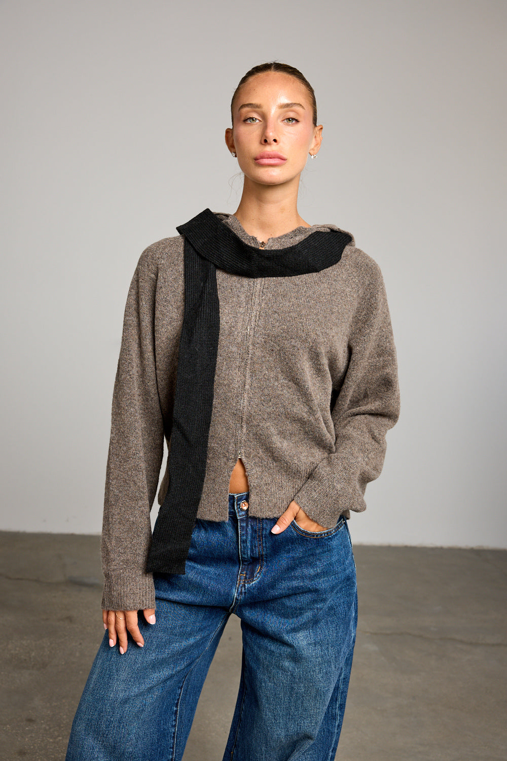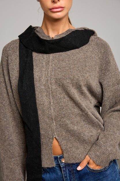קפוצ'ון בגזרה קרובה לגוף עם סגירת רוכסן רוכסן מלפנים מבד סריג בשילוב עניבה