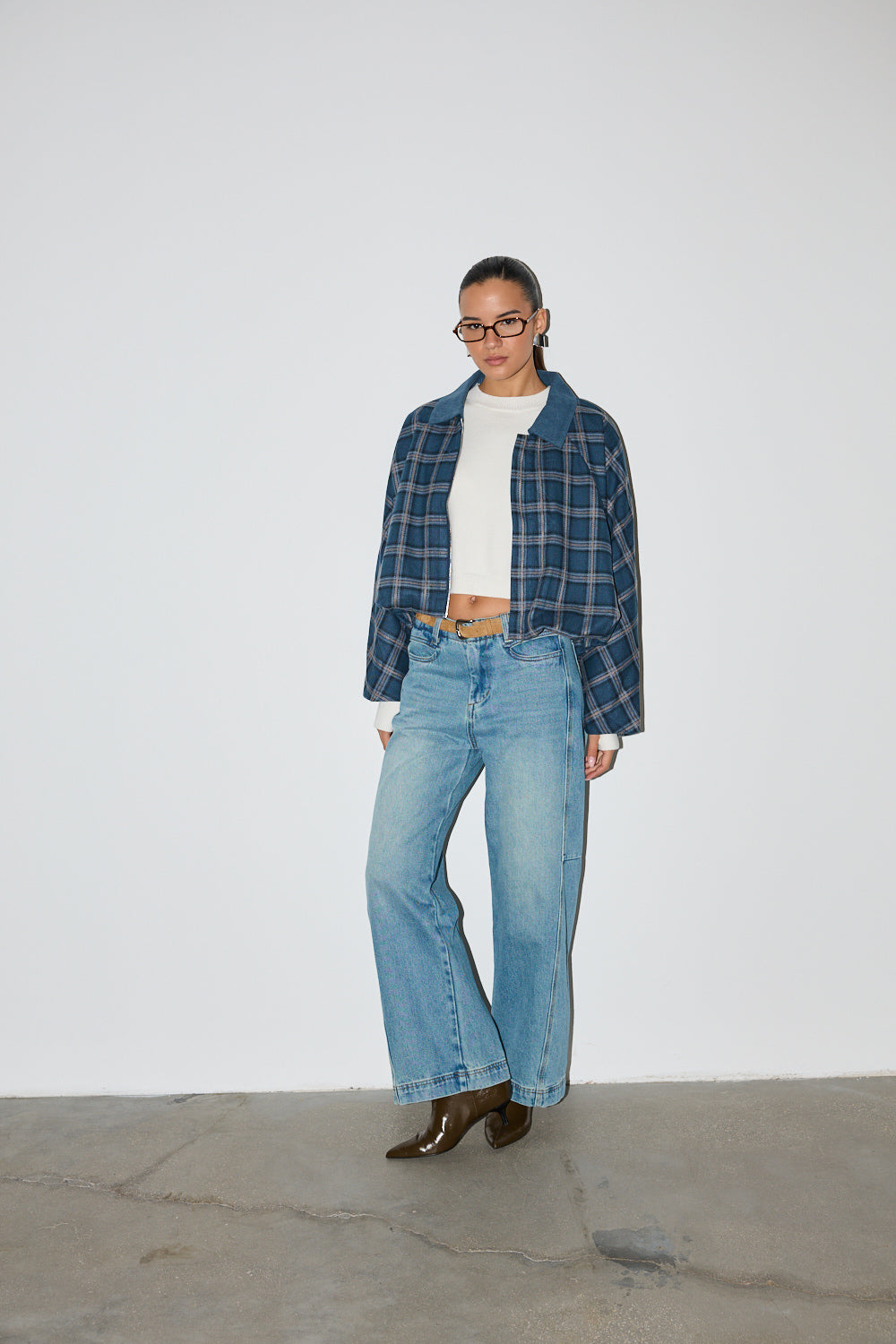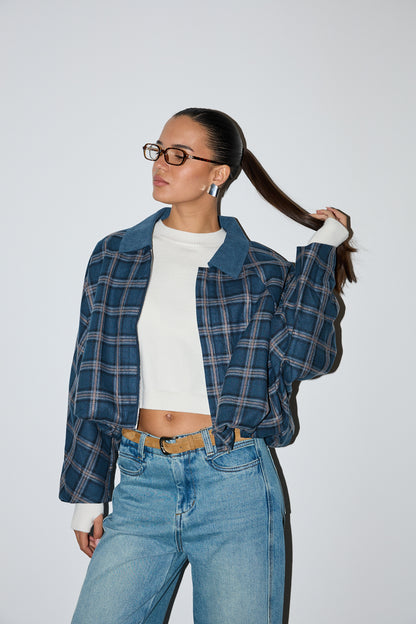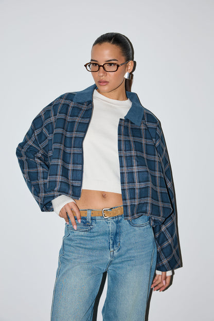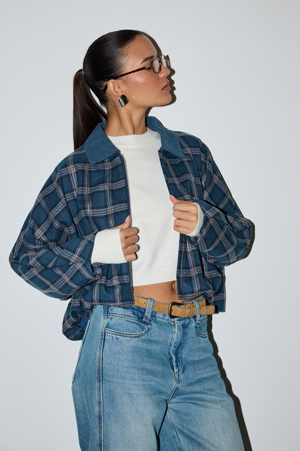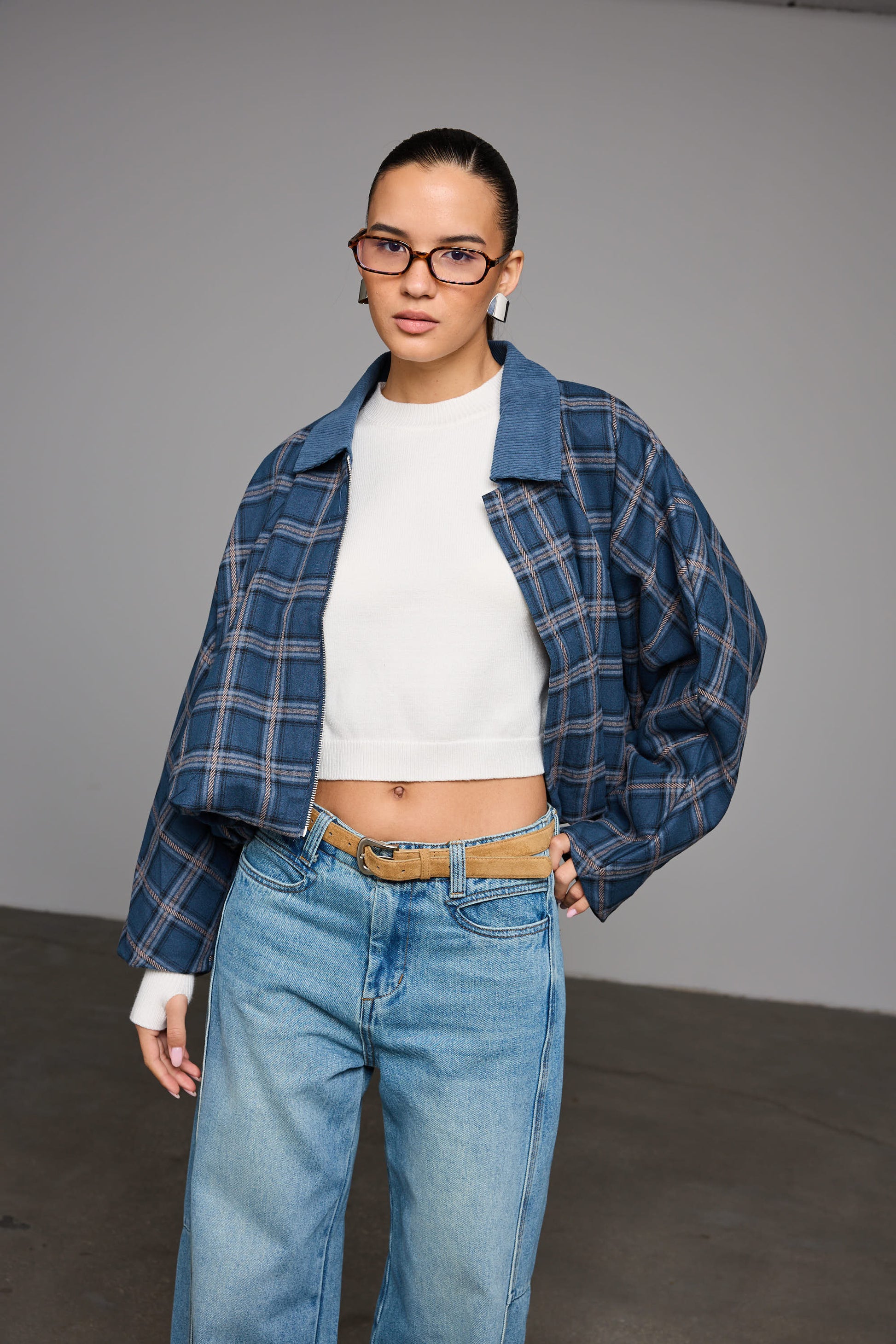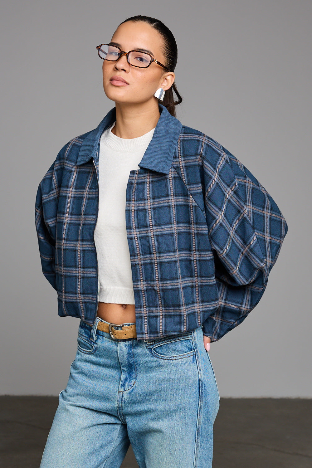ז'קט בגזרת בומבר בשילוב צווארון קלאסי קורדרי בשילוב סגירת רוכסן מלפנים ושרוולים ארוכים