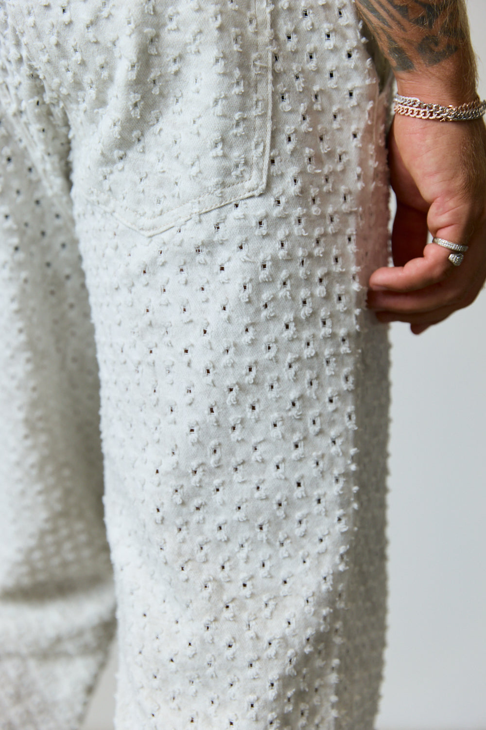 מכנסי ג'ינס טקסטורה מחוררת