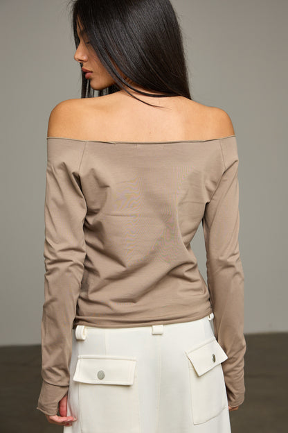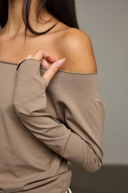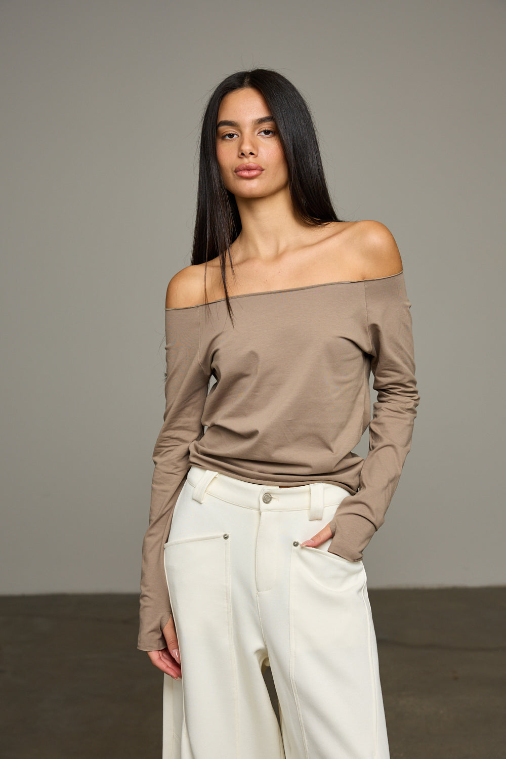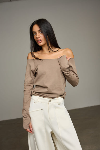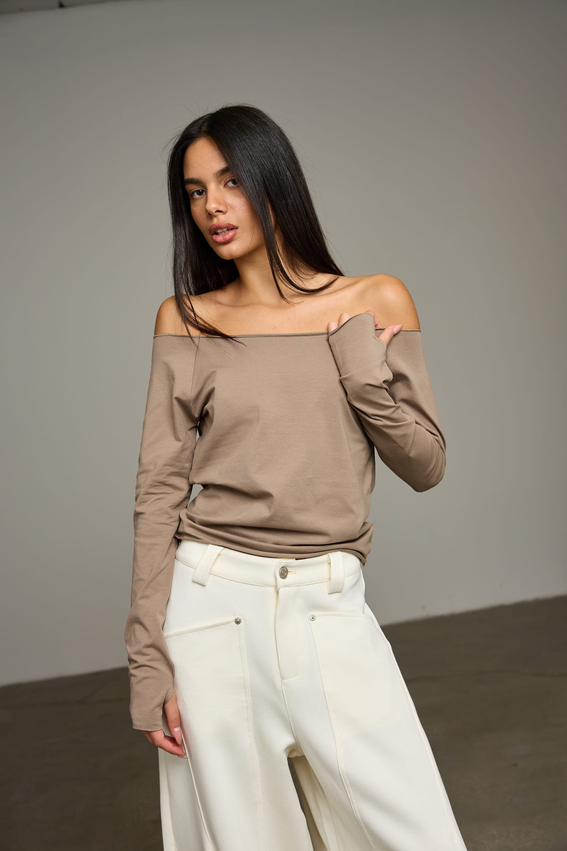 חולצה בגזרת ריטה קרובה לגוף מבד לייקרה נעים למגע בשילוב שרוולים ארוכים